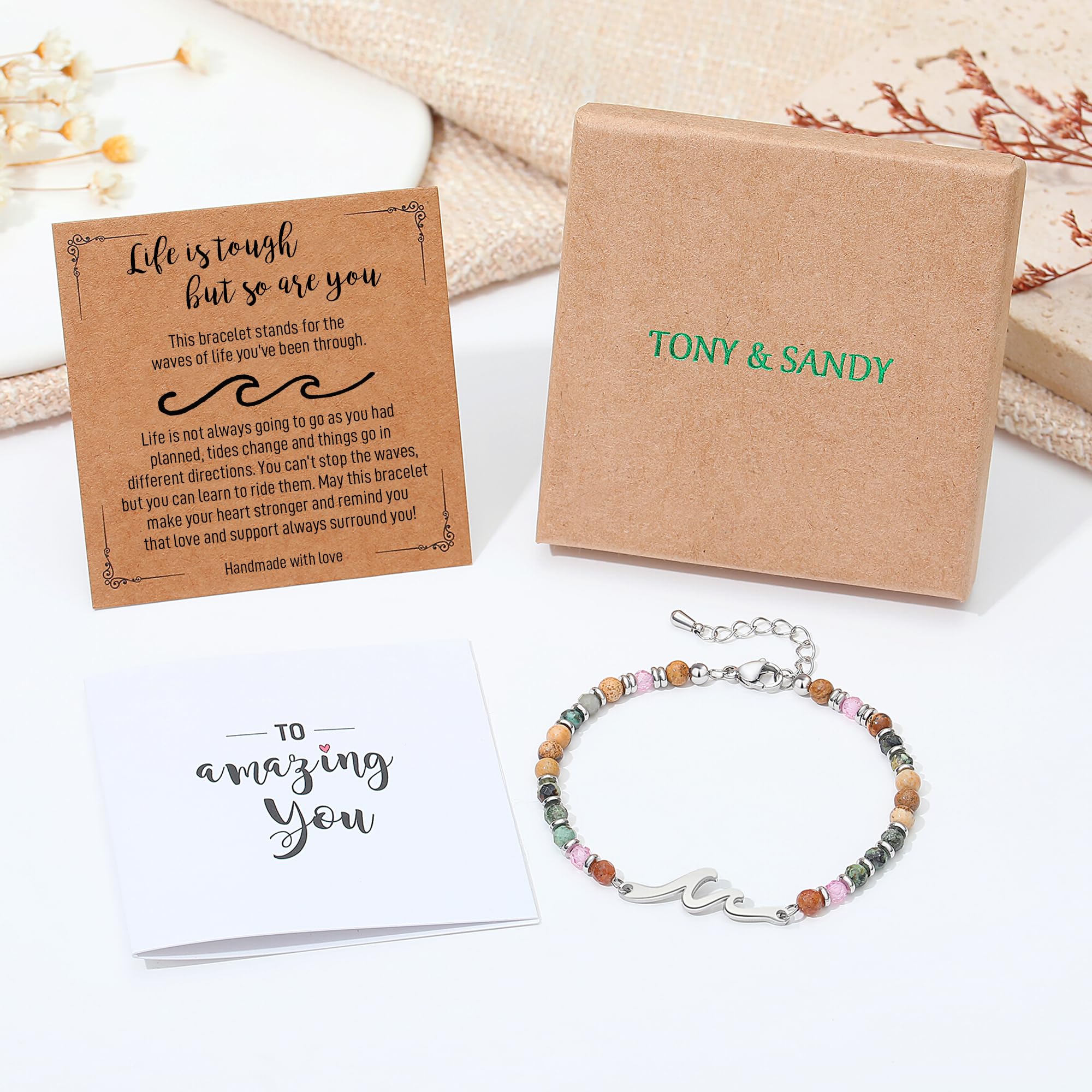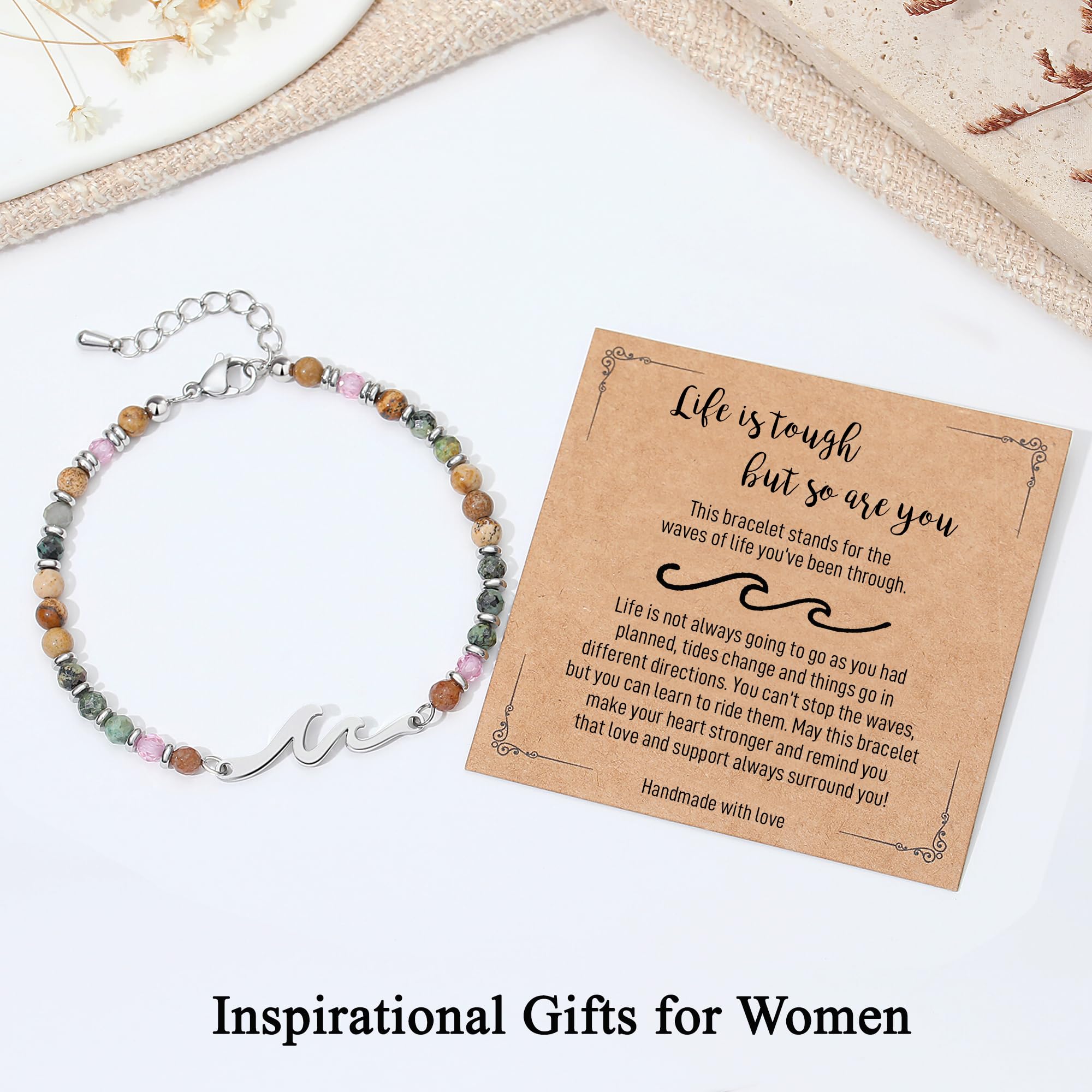 γ Encouragement Gifts for Women γ Like ocean waves, life has ups and downs - you can't stop them, but you can learn to ride them." This bracelet symbolizes resilience, reminding wearers to stay strong through all of life's highs and lows while feeling loved and supported.