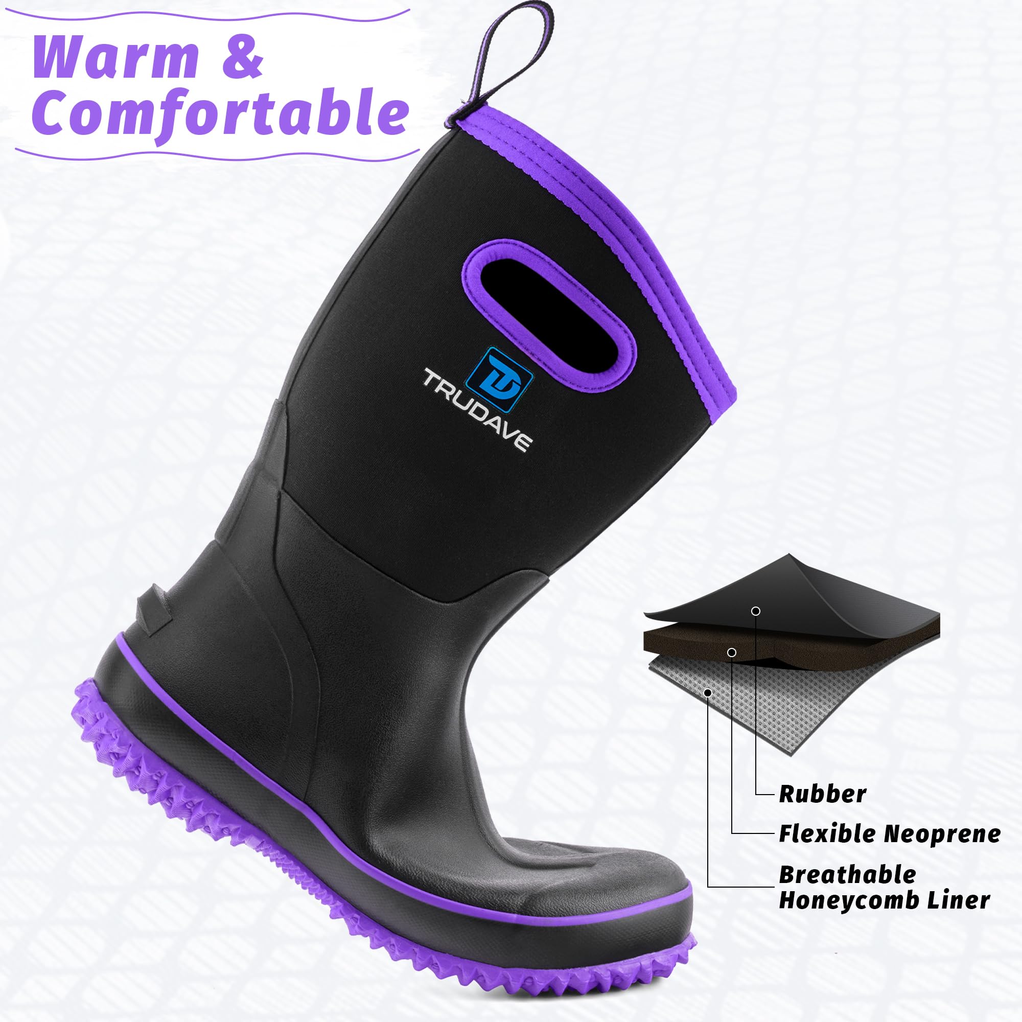 【Lightweight】Trudave womens gardening boots are made of 4mm neoprene (SBR), which is lighter and thinner than regular neoprene boots, making it easier and more comfortable for you to work, fish or hunt!