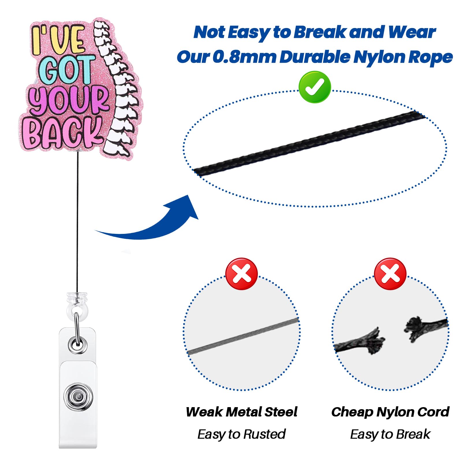 Retractable Cord: The retractable reel cord extends a maximum of 24 inches, more than enough to reach comfortably as far as your arm can reach. The flexible retractable feature enables you to effortlessly display your badge without removing it, enhancing your efficiency at work.