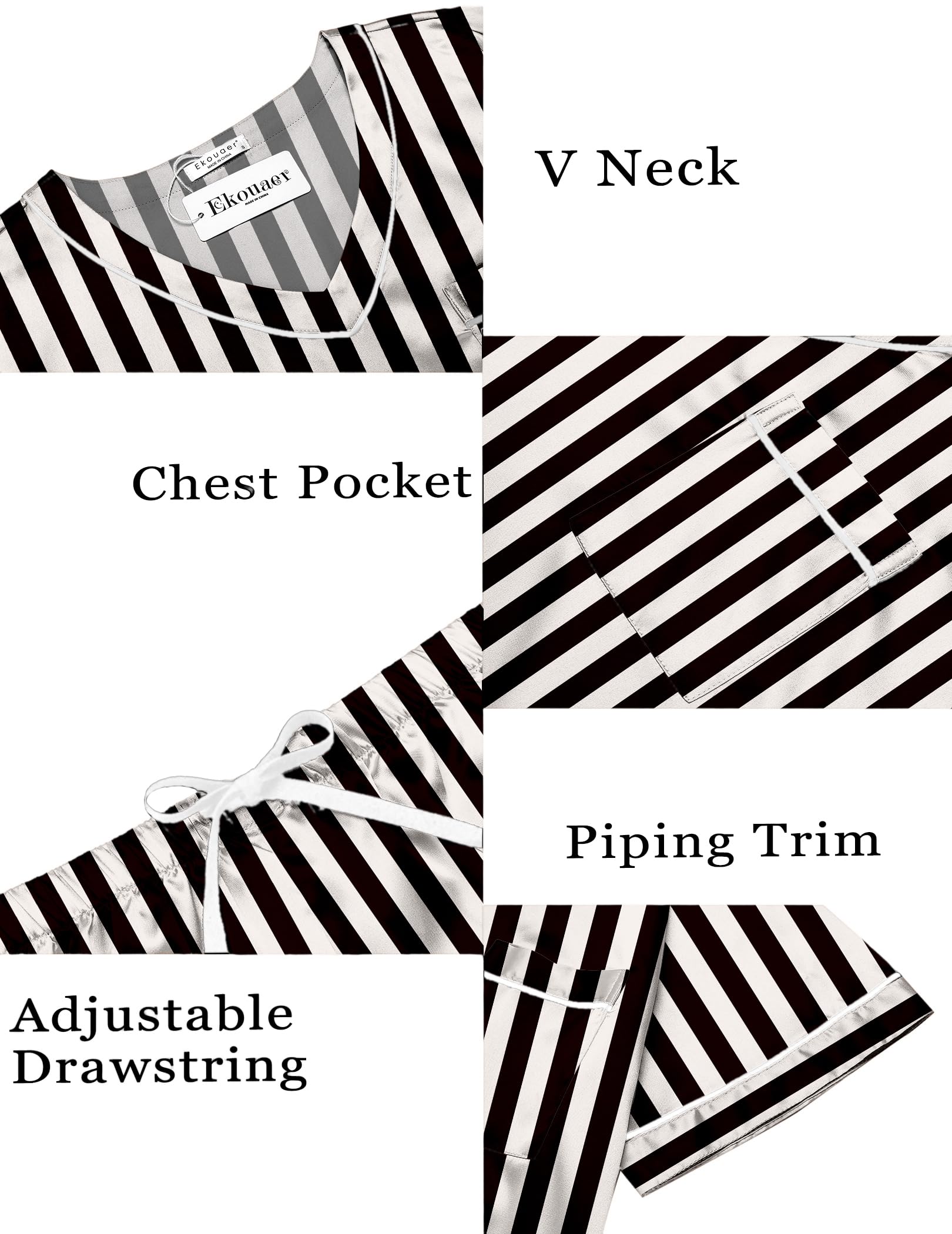 Kindly Remind: Ekoauer silk satin pajamas set are luxuriously stylish & soft to the touch! Washable with laundry bag or similar color clothing. Do not bleach,dry low.Gently press with a warm iron to modify packaging wrinkles before first time wear