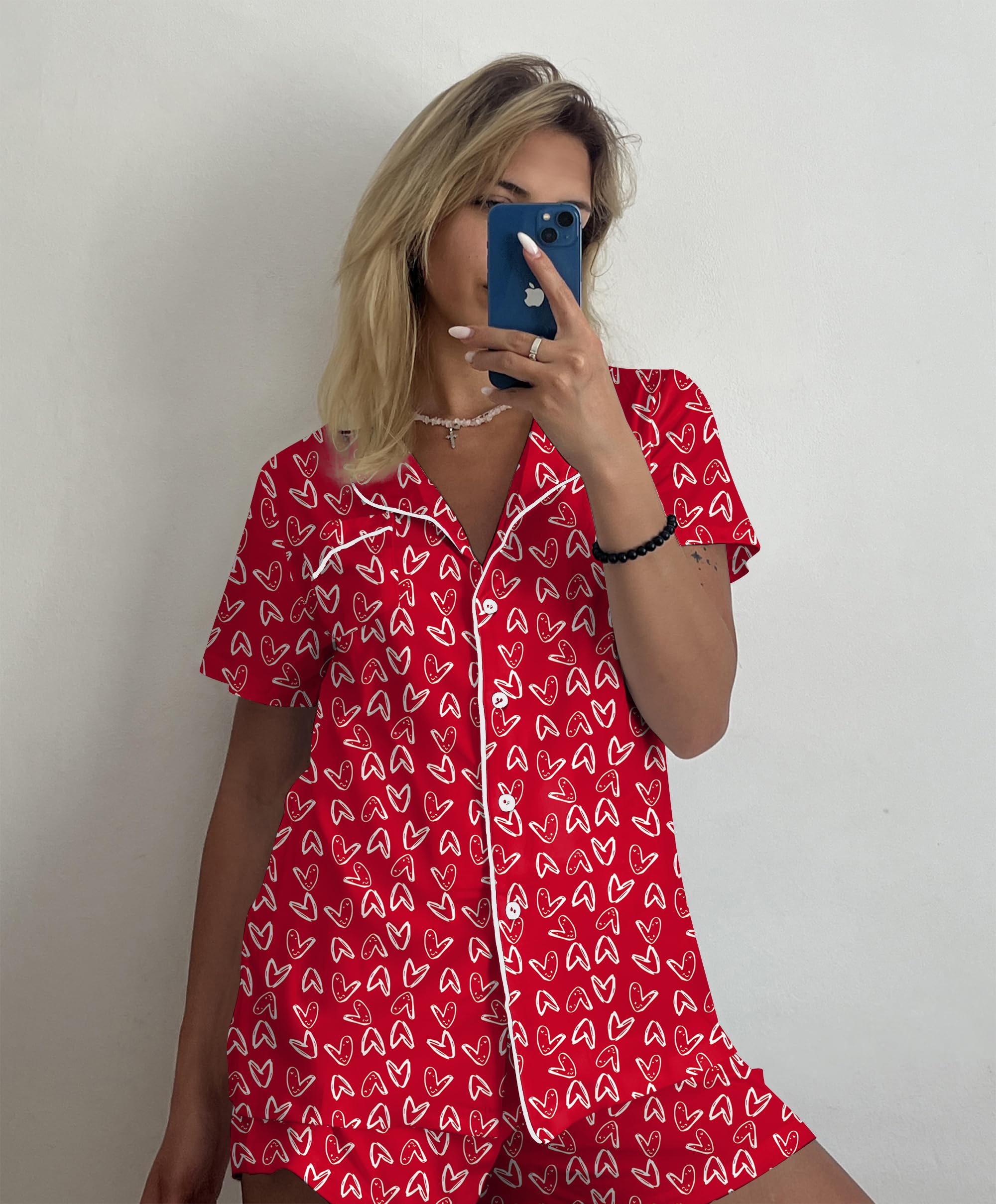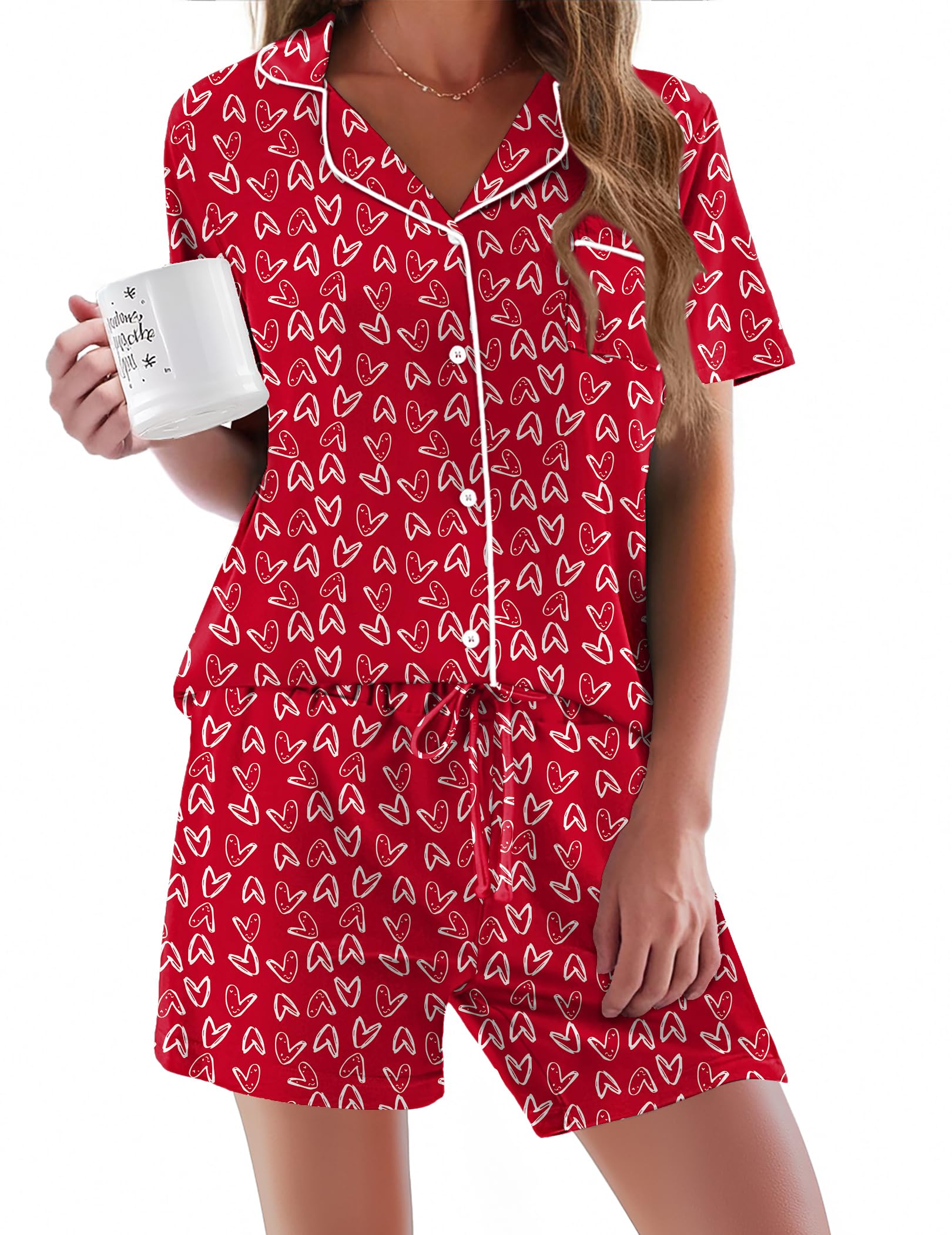 HUMANIZATION DESIGN: Features a hip-length button-down top with notch collar and chest pocket. Shorts include a chiffon drawstring elastic waist for maximum comfort.