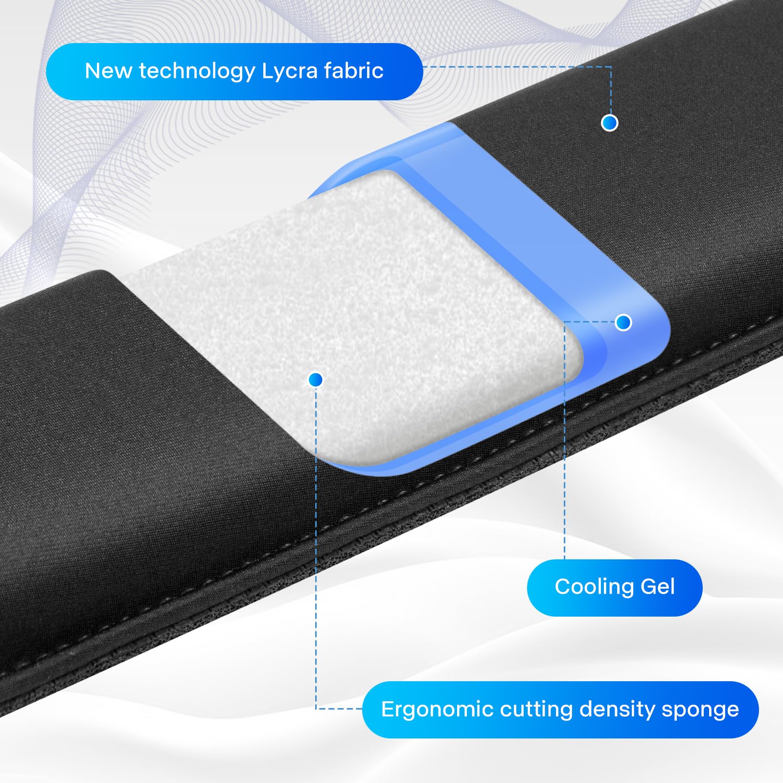 【COOL GEL & UPGRADE SOFT MEMORY FOAM】Enlarge keyboard wrist rest ensuring a lightweight and durable ergonomic touch, keeps your wrists lifted and supported in a comfortable way, slow bounces back and not easy to out of shape, Cool and comfortable to touch, and ideal for longer hours of use.