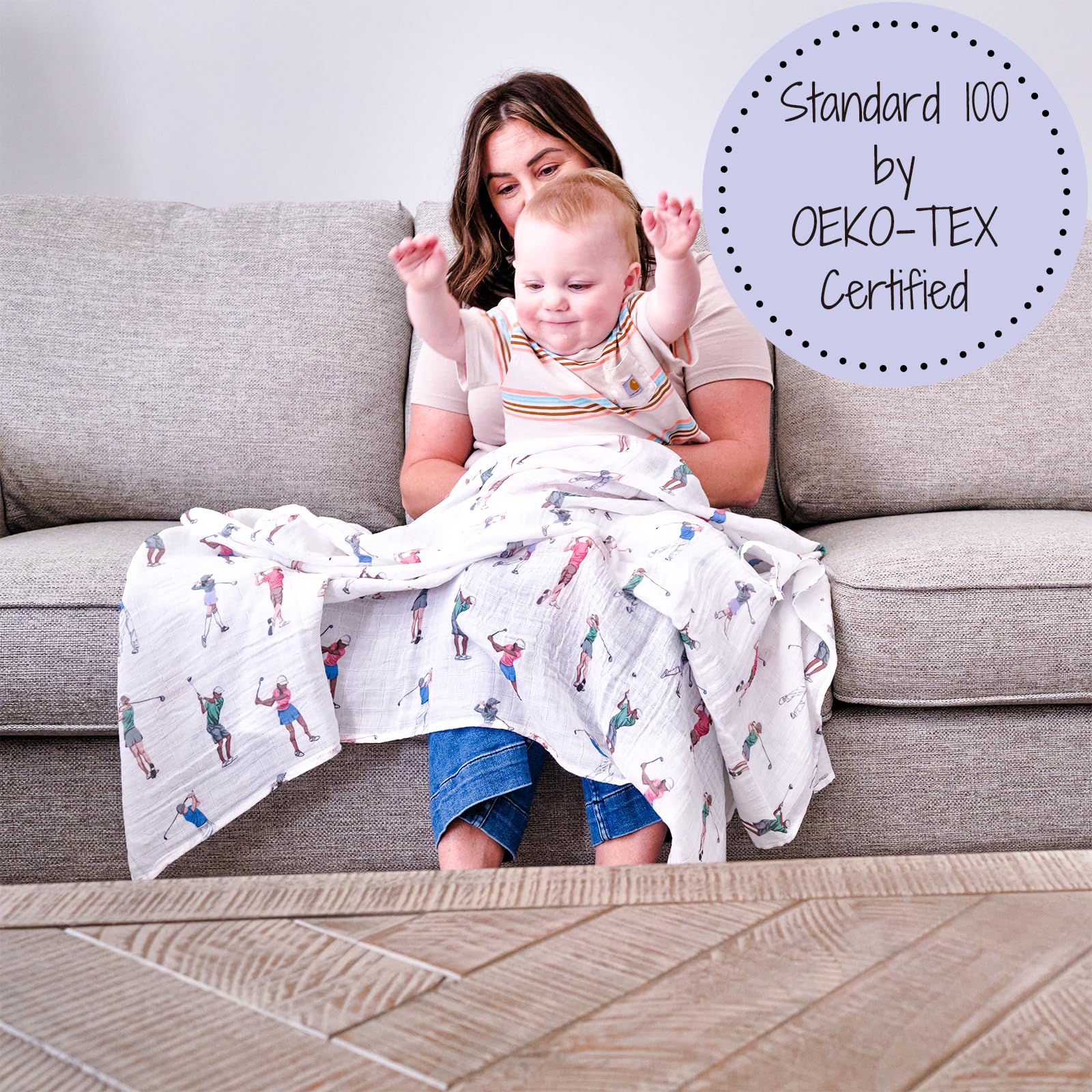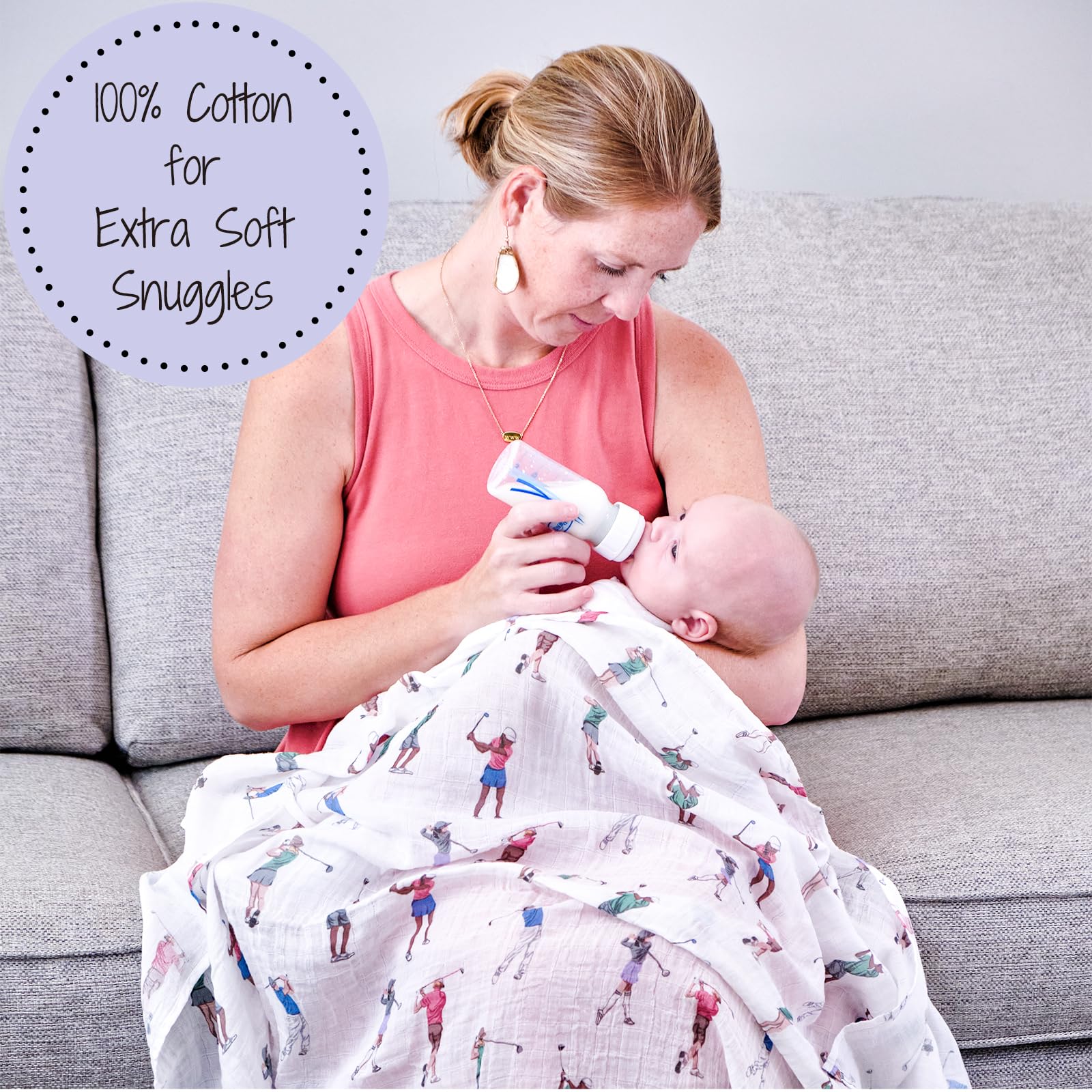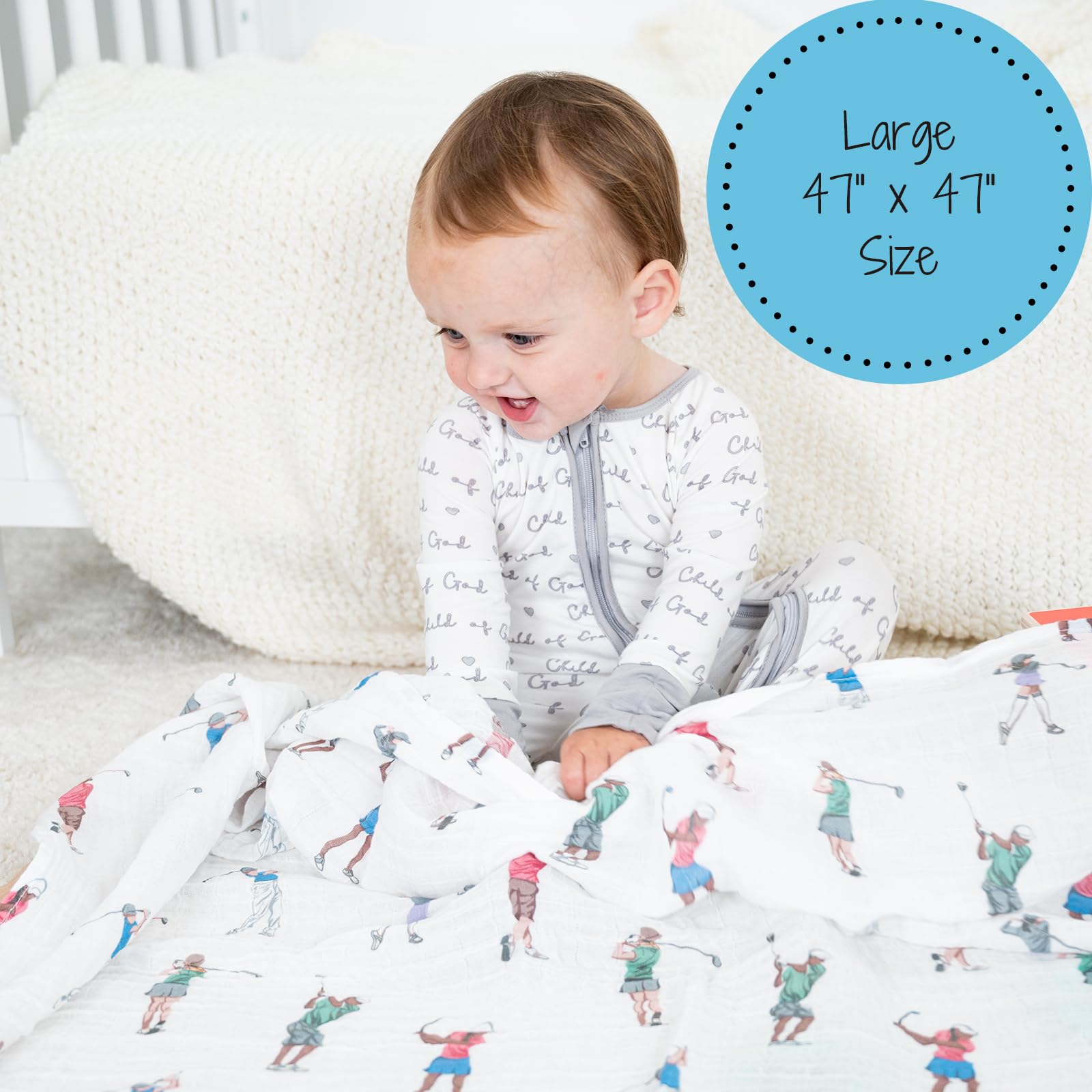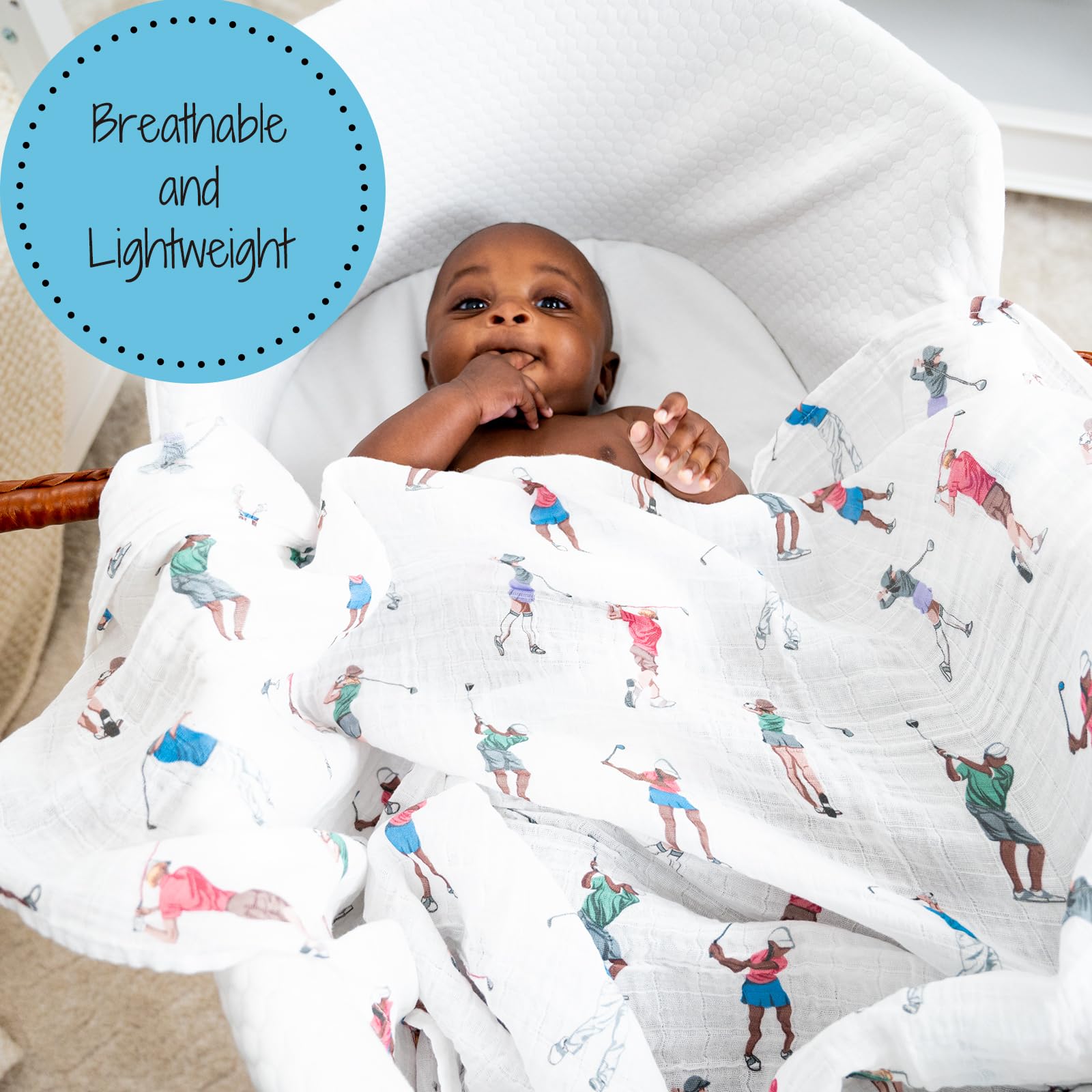 GOLFING FUN - Tee up your baby’s comfort with our muslin swaddle blanket adorned with a playful golf print. It’s cozy and breathable, making it an ideal wrap for future little golfers.