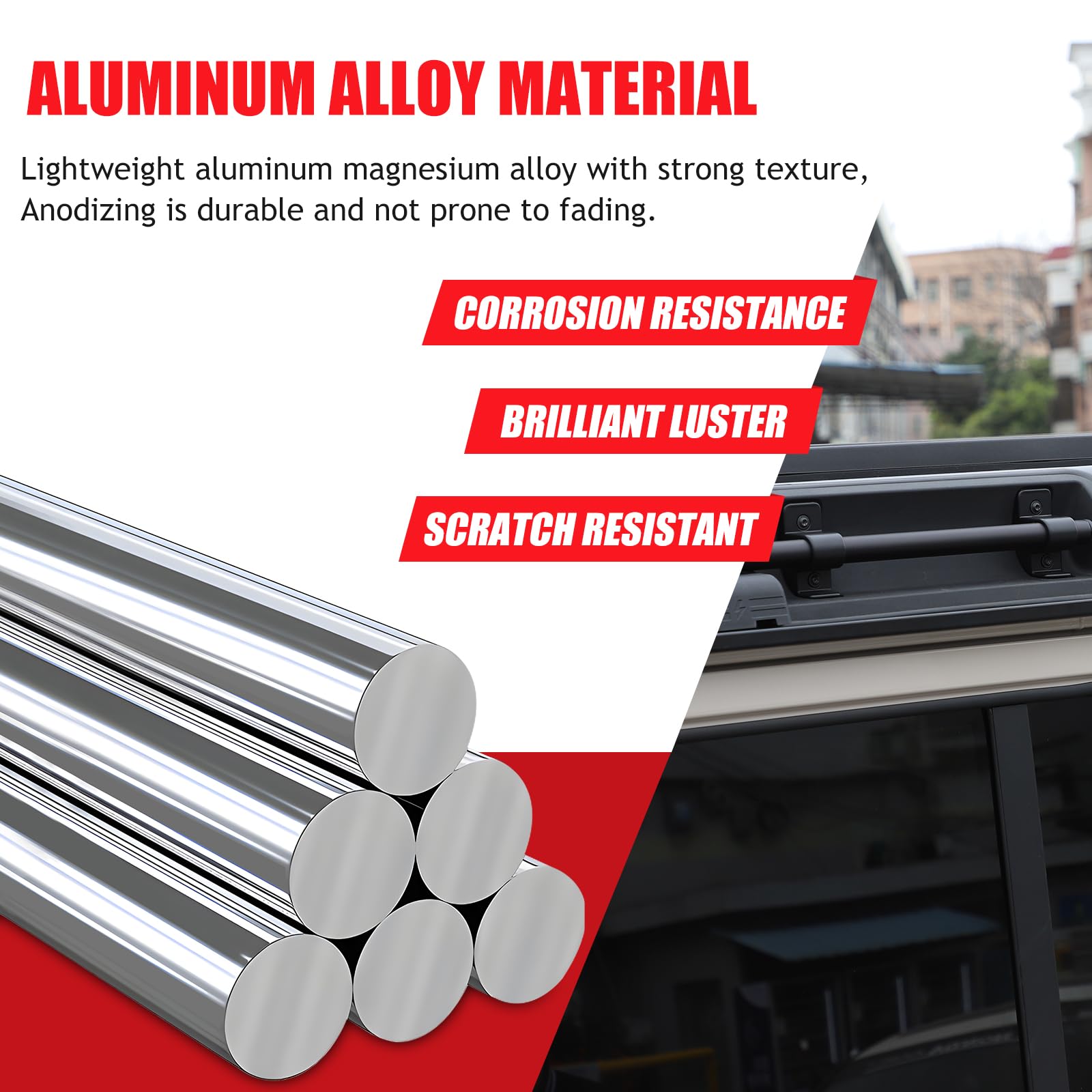 HIGH-QUALITY MATERIALS: Car roof rack is made of high-quality aluminum alloy material, the surface plating treatment, resistant, not easy to aging and wear and tear, corrosion-resistant, heat-resistant, can be adapted to a variety of weather conditions, long service life.