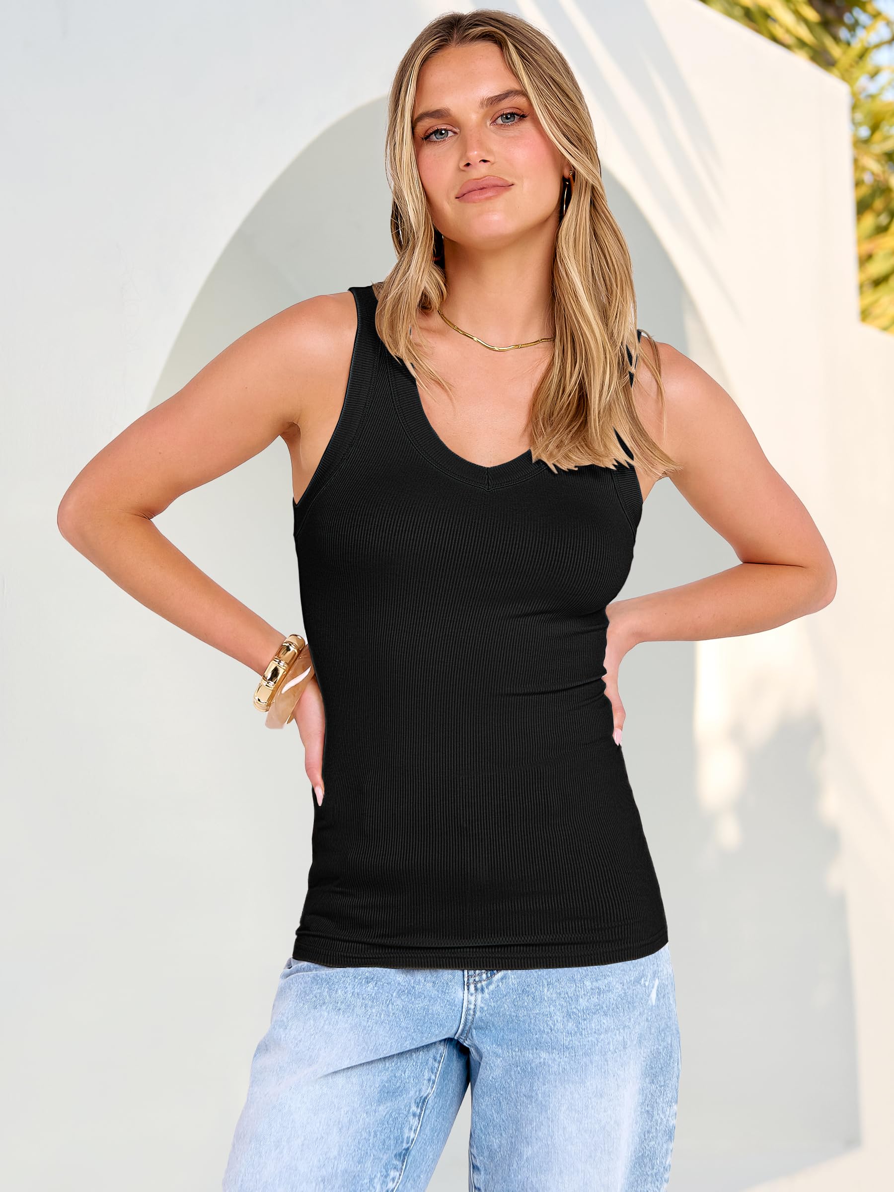 Features - Women's summer tank tops, v neck, short sleeve, ribbed, knitted, slim fit, skinny style. This women's tanks basic tee shirt perfect for daily, casual wear, also can pair with for work, office or athletic wear.