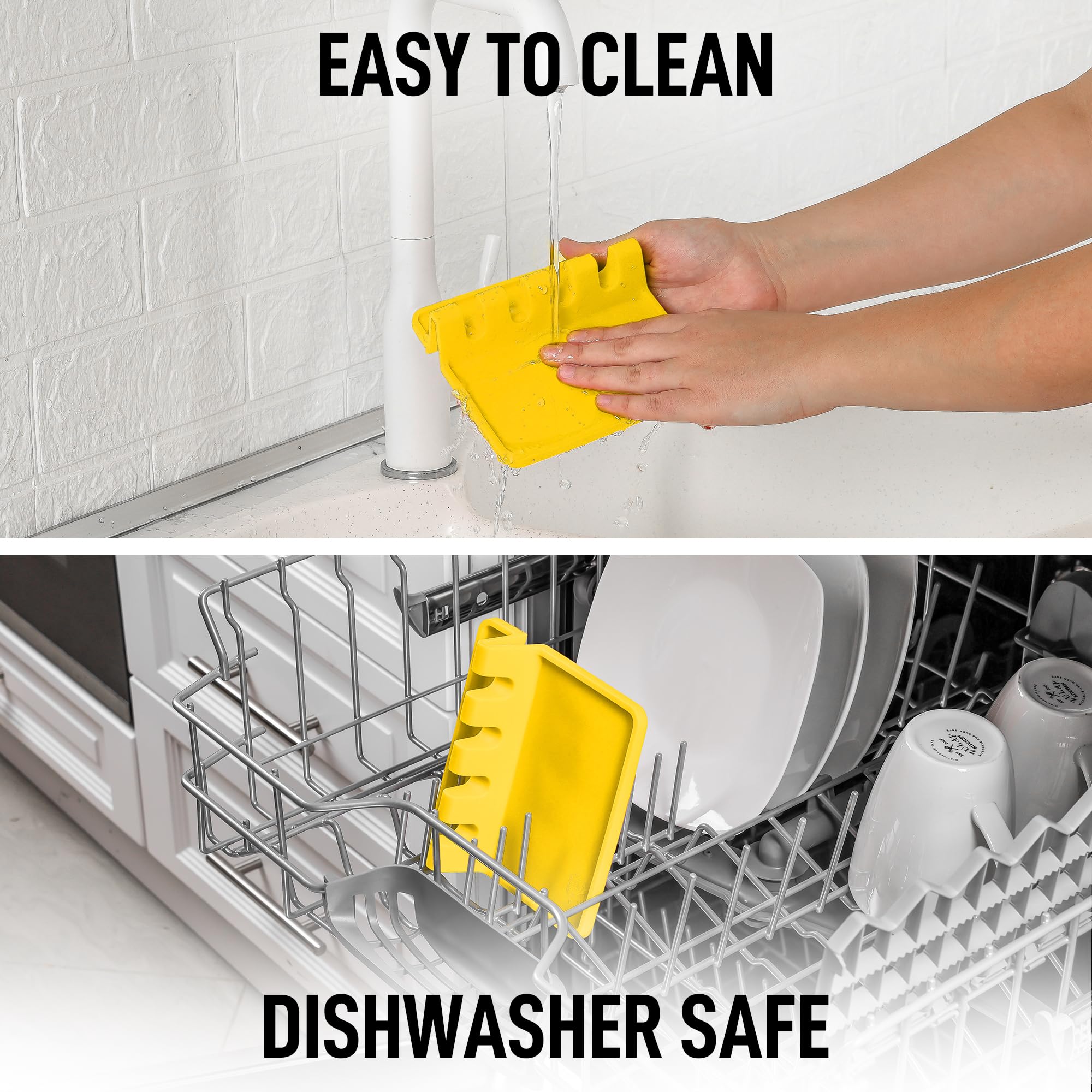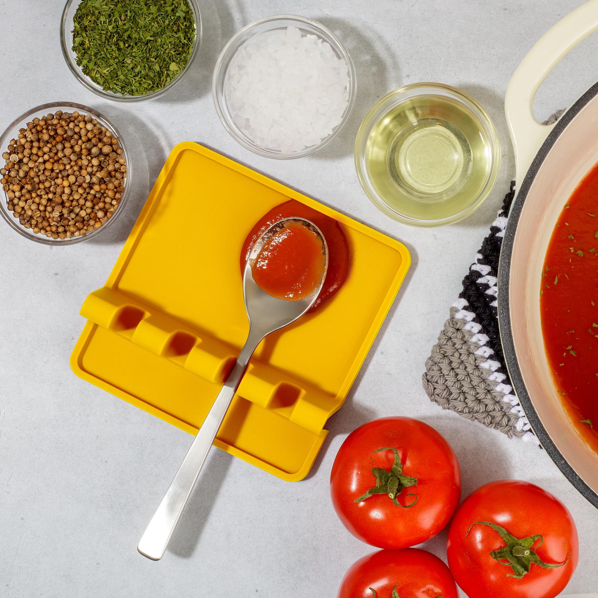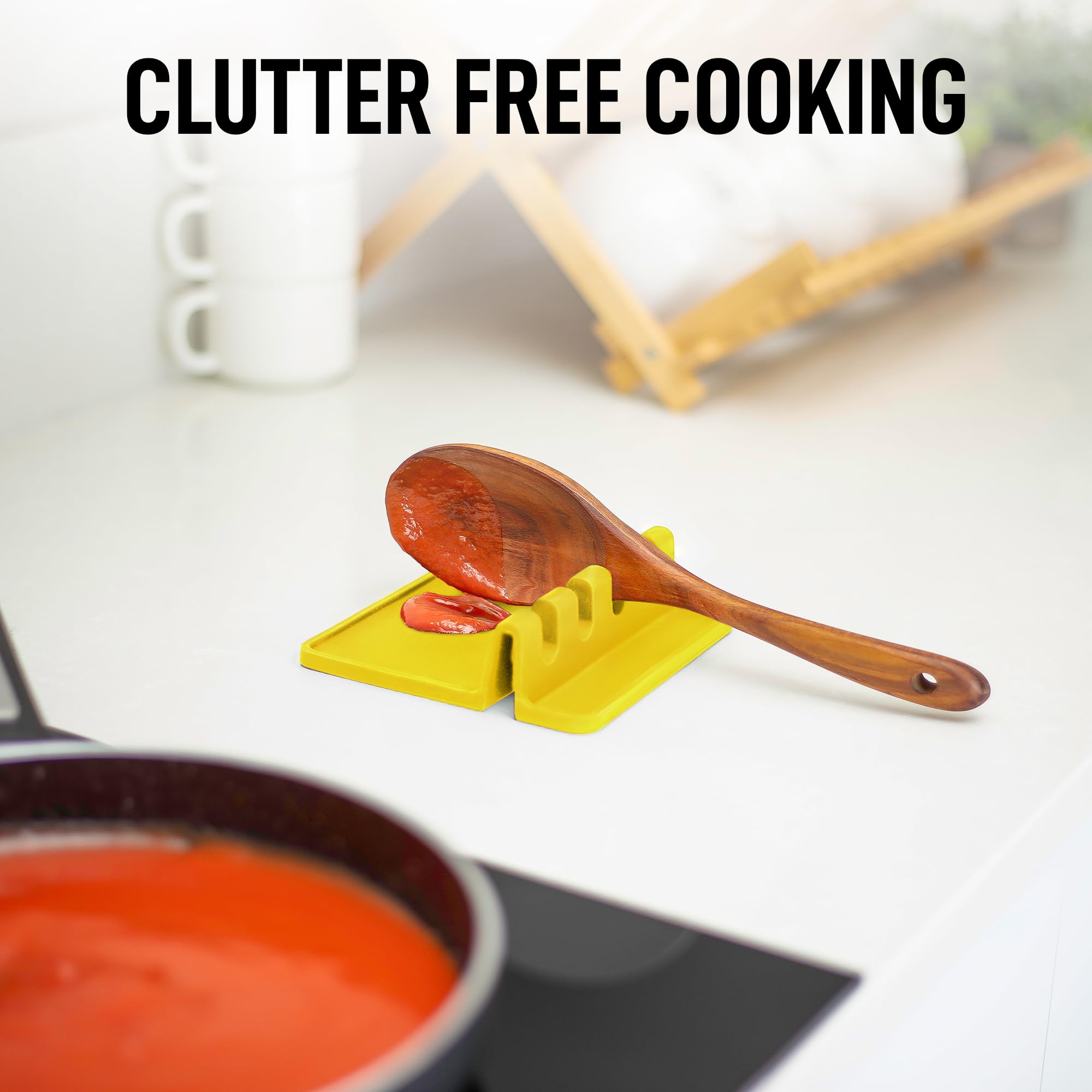 HEAT RESISTANT AND EASY TO CLEAN: Made from food-grade material, this silicone spoon rest can be placed near the stove or countertop without it being affected by heat. It is designed with a non-slip base to prevent it from sliding and causing chaos while cooking. Once you are done with cooking, toss the kitchen tool holder in the dishwasher for a quick cleanup.