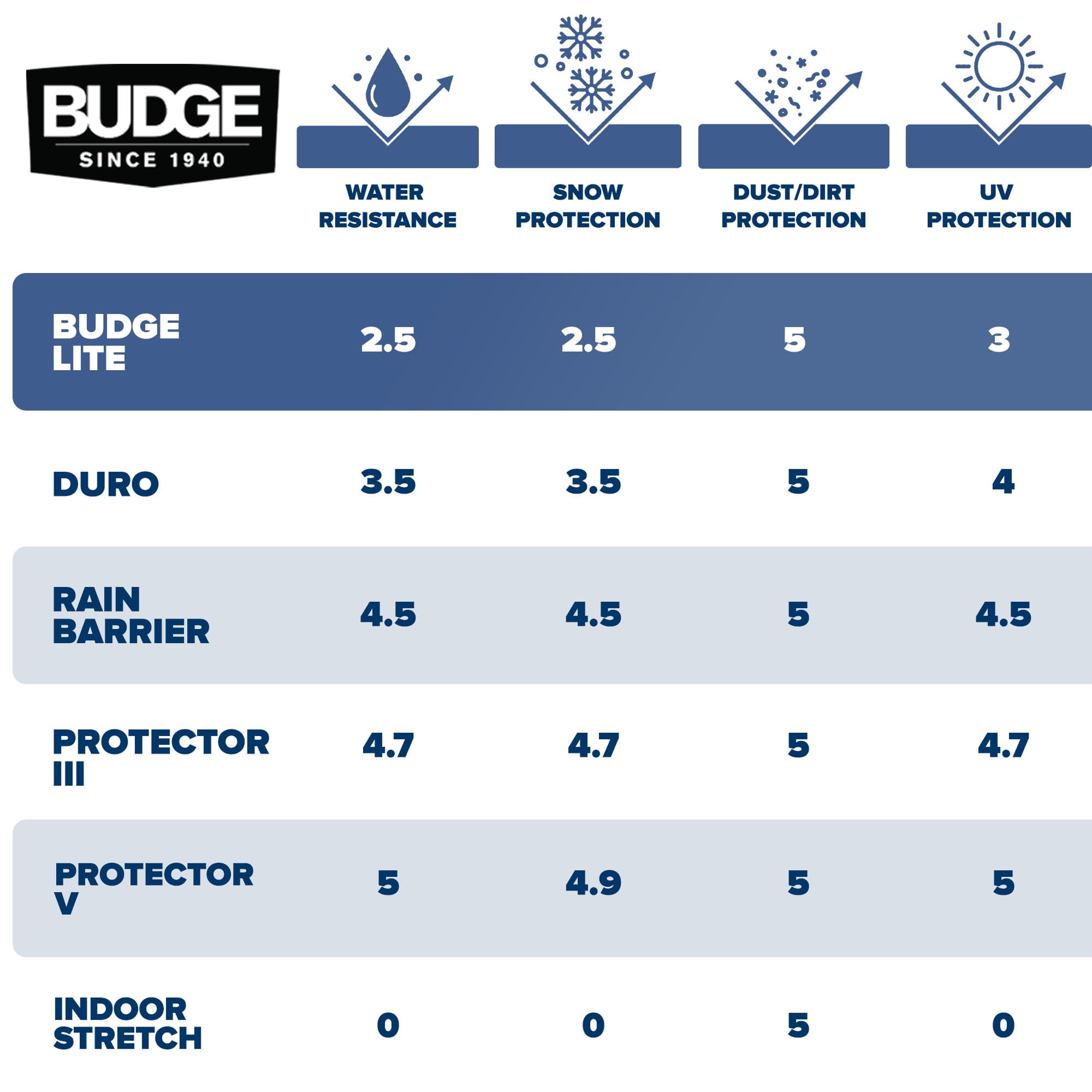 DURABLE CRAFTSMANSHIP: Built with double-stitched seams and reinforced edges for lasting strength. Designed with pride by Budge to deliver dependable indoor car cover protection that keeps your SUV looking its best