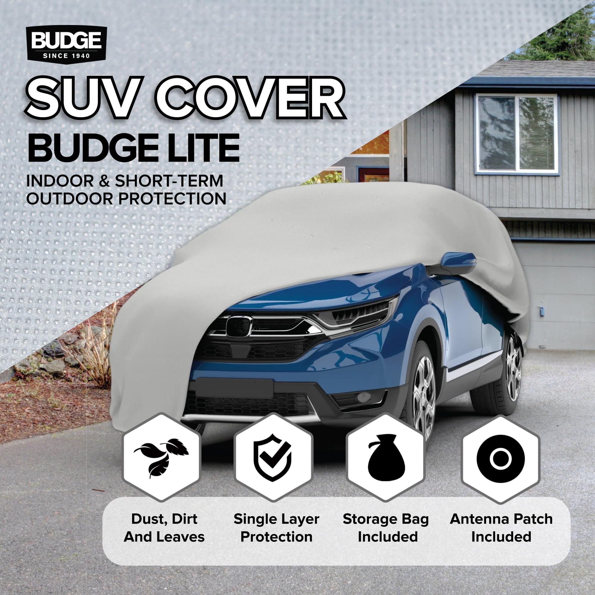 Protect your SUV from dust, dirt, and light debris with the Budge Lite® SUV Cover—a smart, affordable choice for reliable indoor and occasional outdoor protection. Designed for everyday convenience, this SUV car cover provides simple yet effective coverage to help keep your vehicle clean, spotless, and ready to drive. Made from a single layer of breathable, non-abrasive polypropylene, this indoor car cover allows air to circulate freely to help reduce heat buildup while protecting your vehicle’s paint finish. Its lightweight construction makes it easy to install, remove, and fold away—perfect for garage storage, carports, or shaded outdoor spaces. Engineered with durable craftsmanship, the Budge Lite® dust-proof car cover features double-stitched seams and reinforced edges for lasting strength. The semi-custom fit design ensures full coverage and a secure hold, with an elasticized hem that hugs your SUV’s bumpers and sides to stay in place. Available in multiple sizes to fit SUVs up to 162" L x 59" W x 60" H, the Budge Lite® SUV Cover includes built-in grommets for tie-down security and a convenient storage bag for compact organisation. Choose smart, everyday protection that keeps your vehicle looking its best—without the premium price tag.