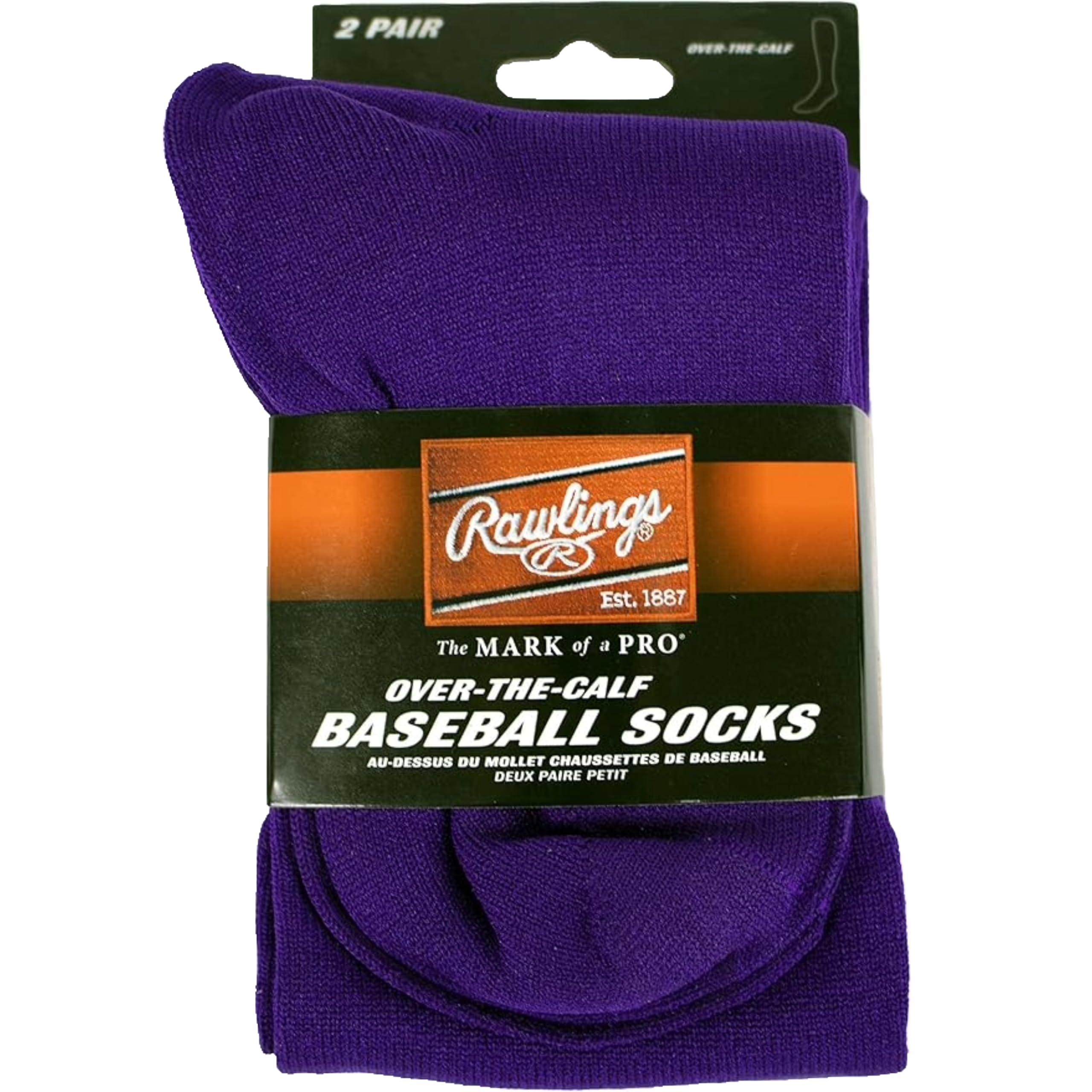 Description Rawlings Over-The-Calf socks.Available in three sizesSock SizeKids Shoe SizeWomens Shoe SizeMens Shoe SizeSmallY-5Y4-6--Medium5Y-7Y6-106-8Large--10-138-12