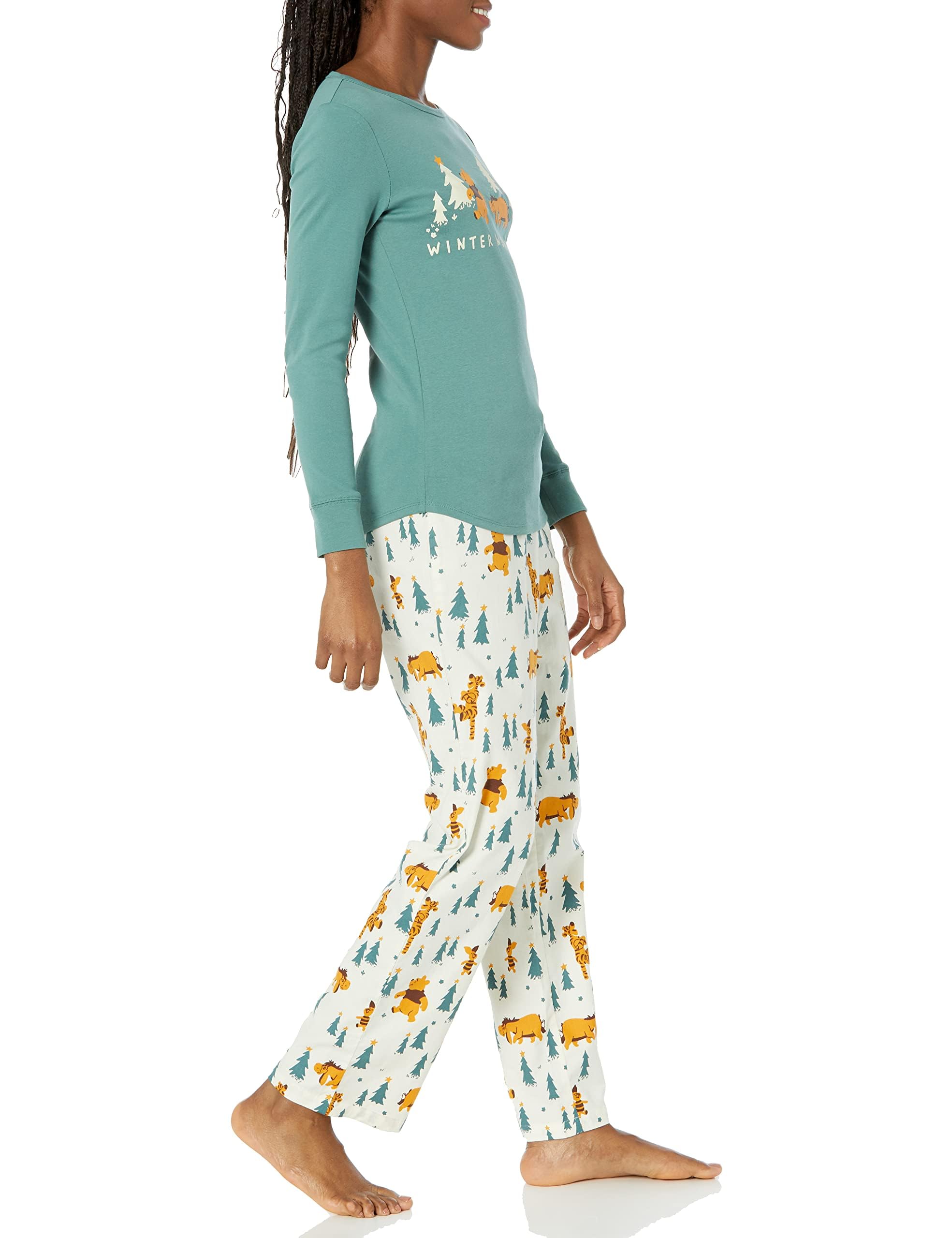 T-SHIRT AND FLANNEL PAJAMA SET: The perfect flannel and jersey pajama set for snuggling up and relaxing whether you are sleeping or lounging around the house. Style back to Amazon Essentials Women's Slippers to keep your feet cozy and warm.