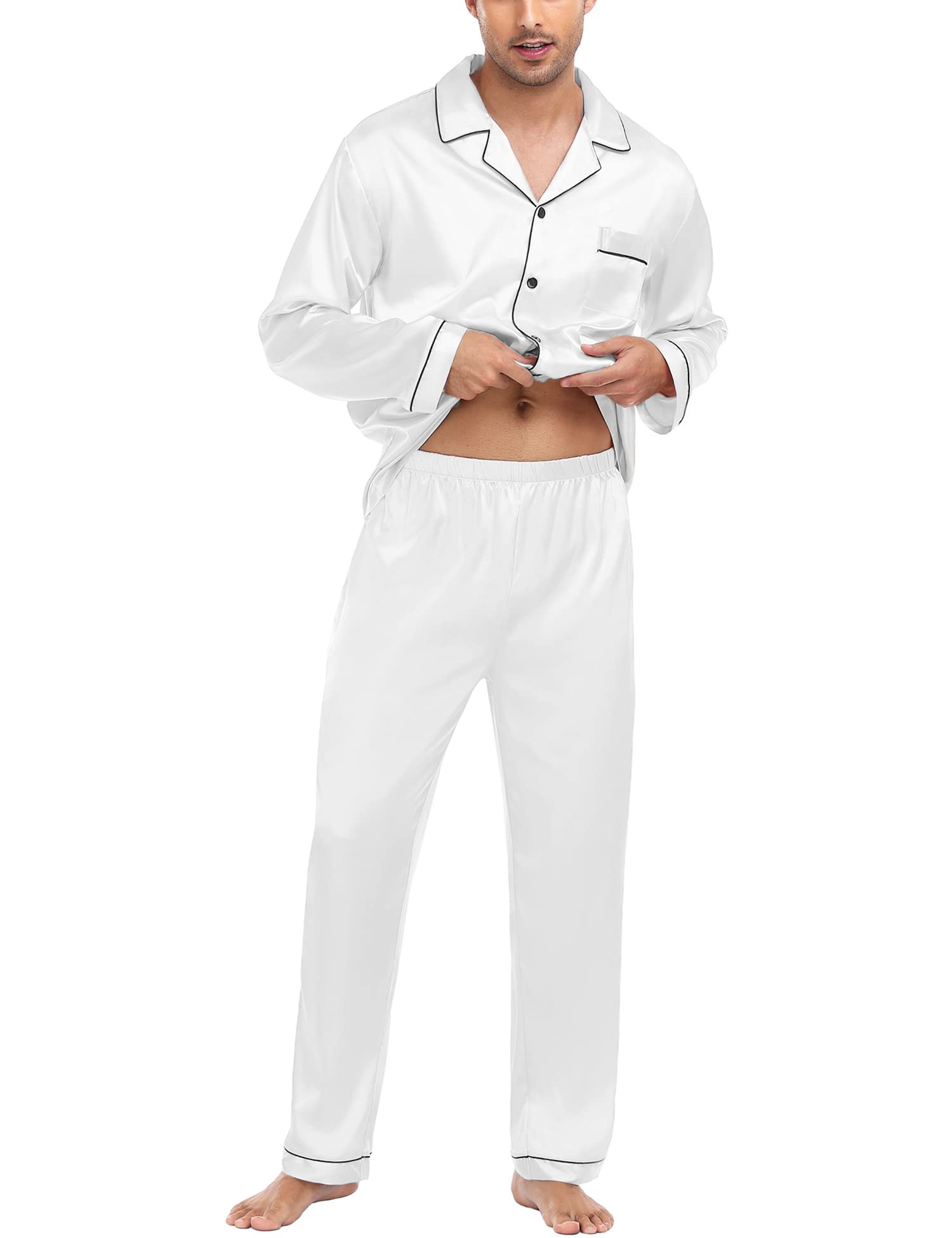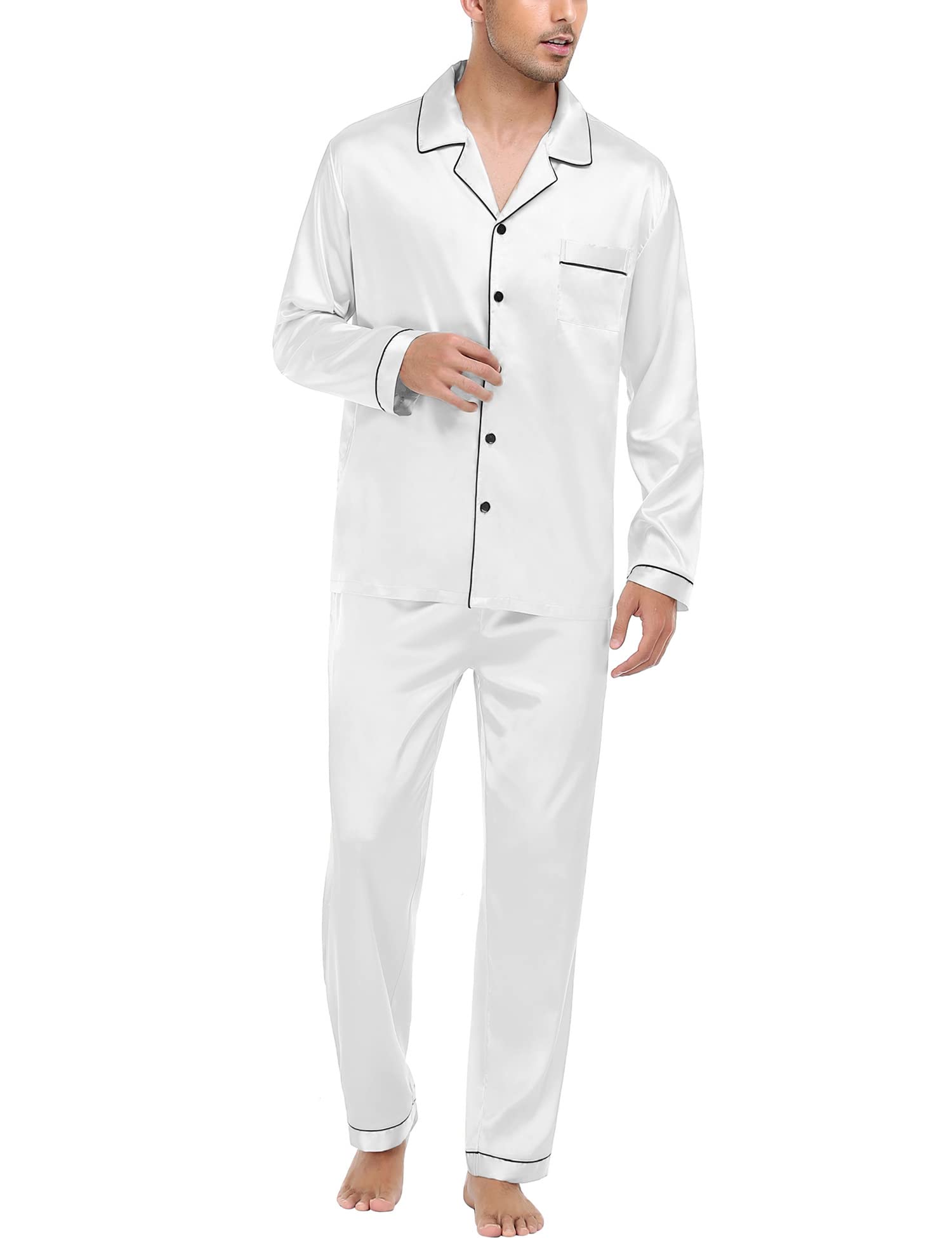 OCCASION & BEST GIFT: Nicely tailored Satin Pajama sets are perfect for sleep, wedding, pajama party, and loungewear, or take a free walk in the park. On Halloween, Thanksgiving Day, Christmas, Father's day, a pajama set is the perfect present for your dad, husband, son, or boyfriend