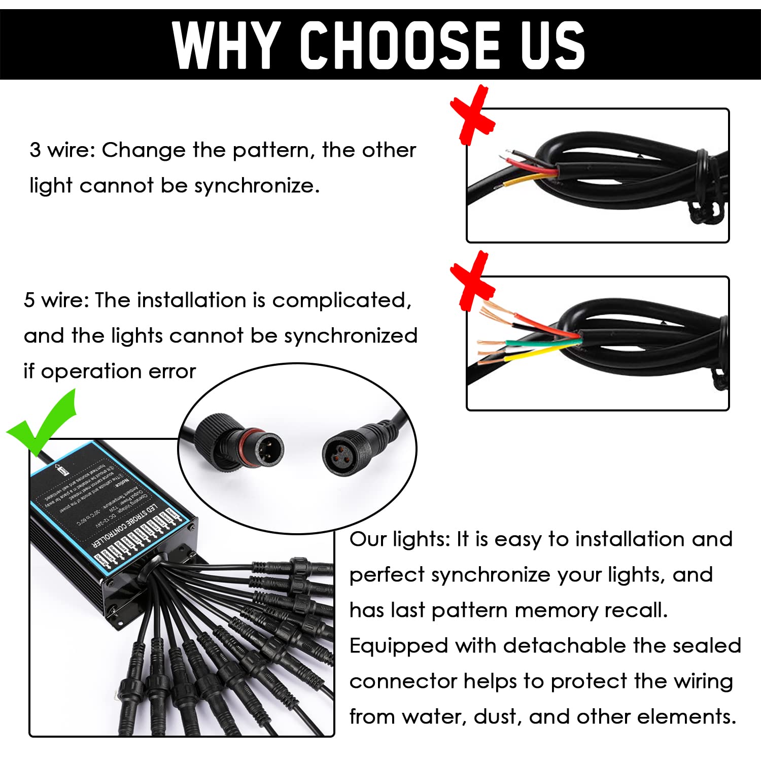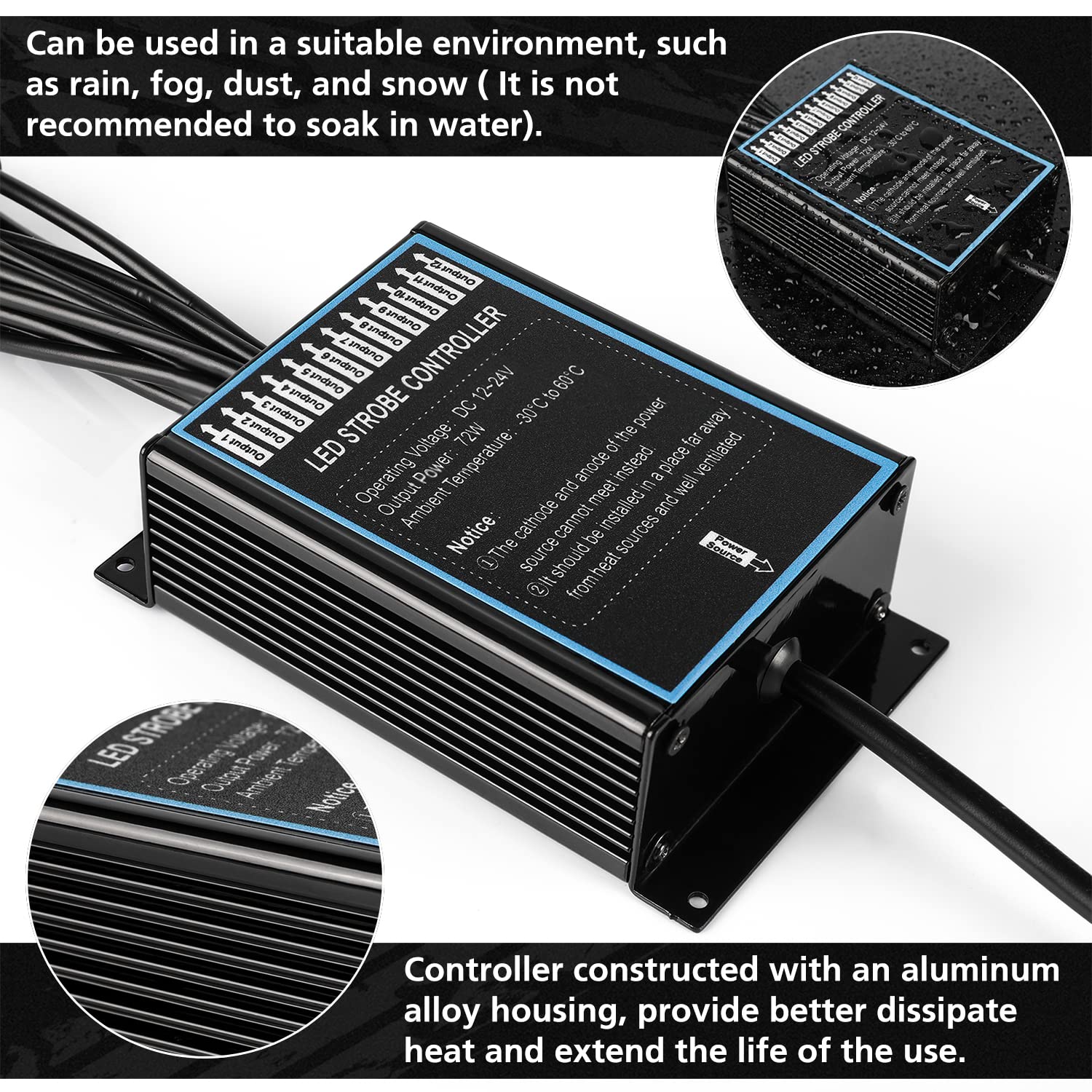 12PCS Super Bright Strobe Lights with Controller: Each light features high-intensity LED chips with wide optic lenses, offers a super bright light output that can be seen from a distance, even in broad daylight. Easy operation to help prevent accidents and ensure the safety of the driver and other road users.