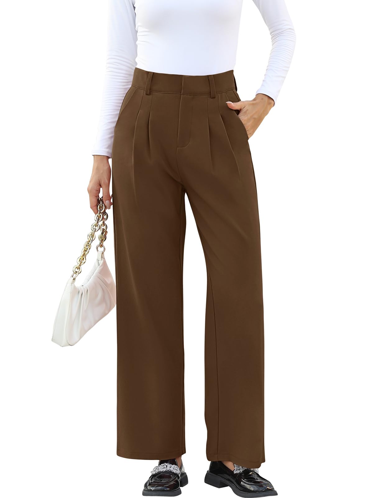 💗 Features: The front pleats add a fashion sense. The straight leg pants will work even If you are curvy or have thick calves and thighs. Side pockets are deep enough to hold your phone and wallet. Decorative fake pocket on the back make your hips look better.