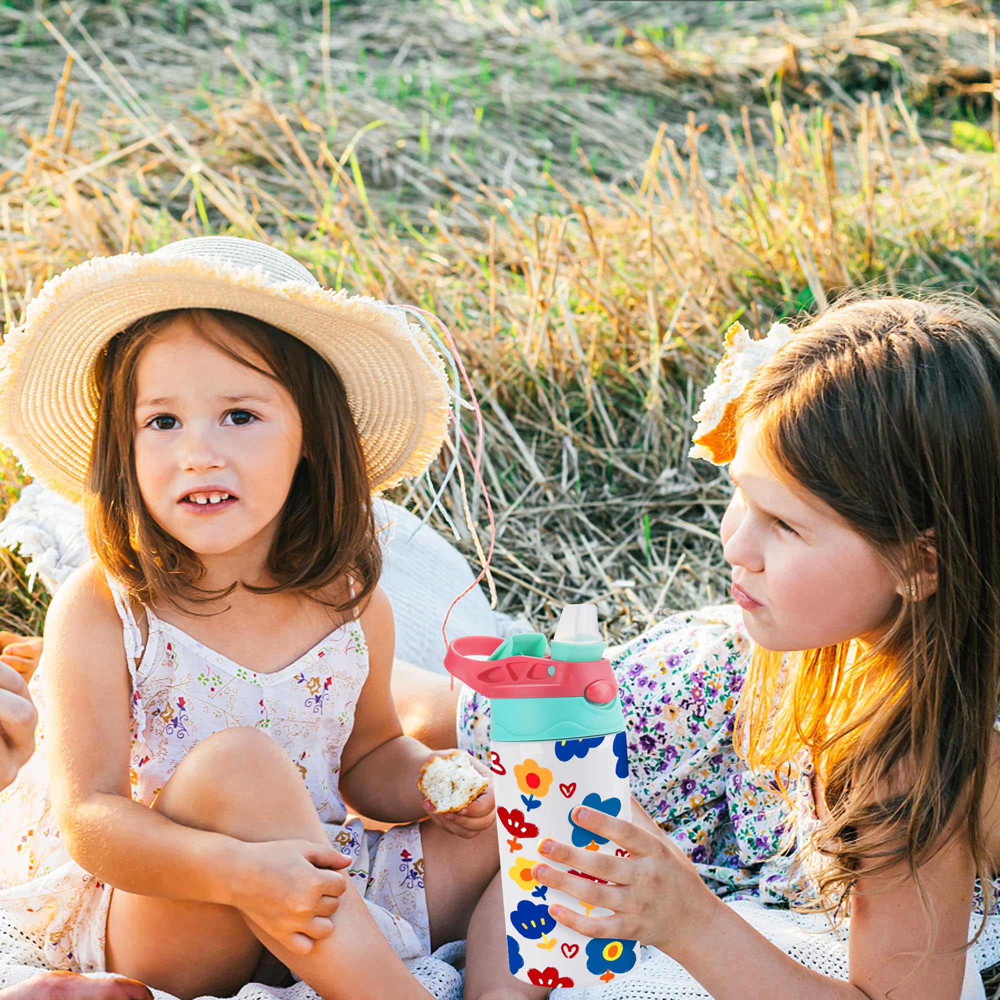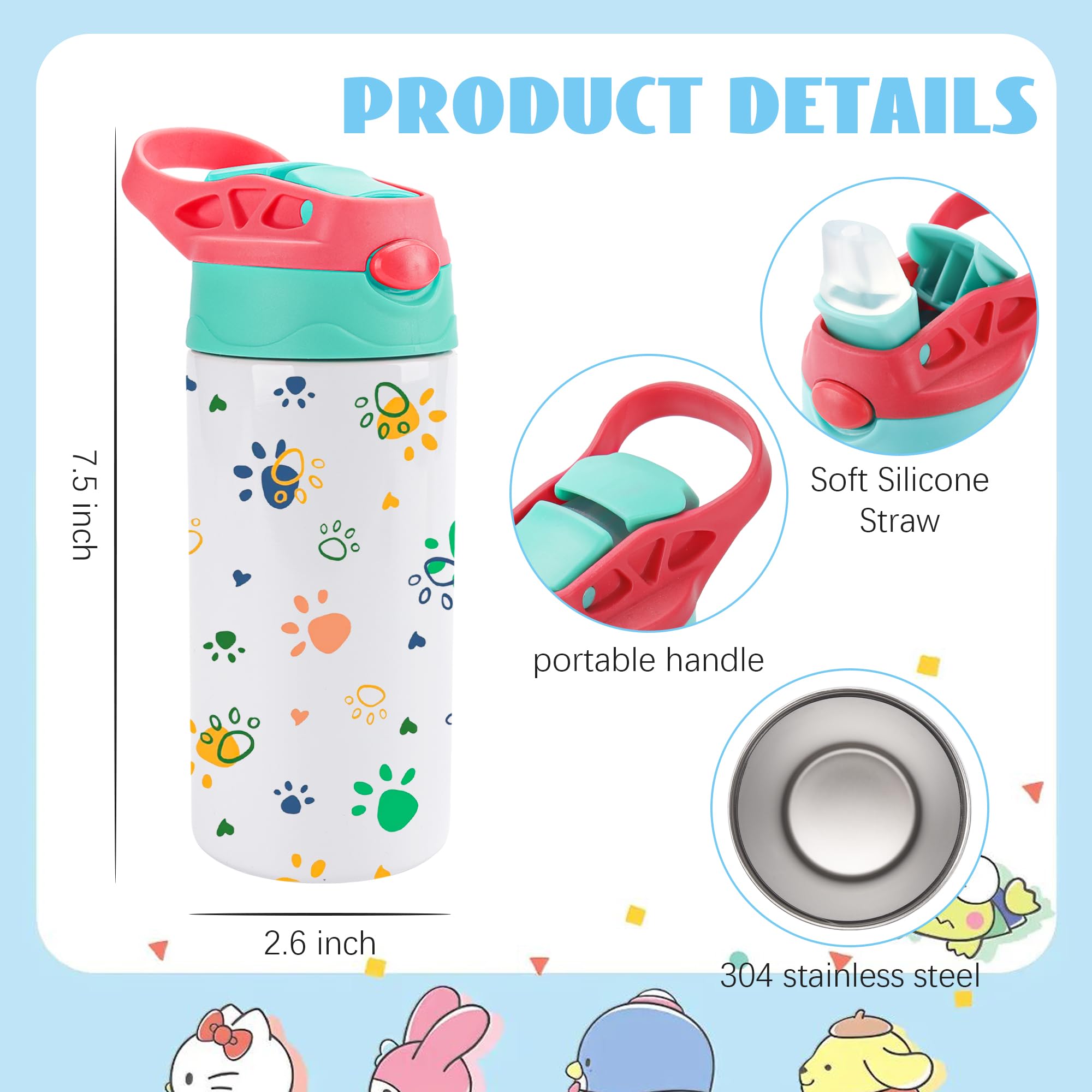 Highly Quality and Safety: The kids sublimation water bottle is made of 304 food grade stainless steel, and gentle on child's teeth straw. Double walled vacuum insulated water bottle will keep drinks hot or cold for hours, perfect for keeping child's drinks