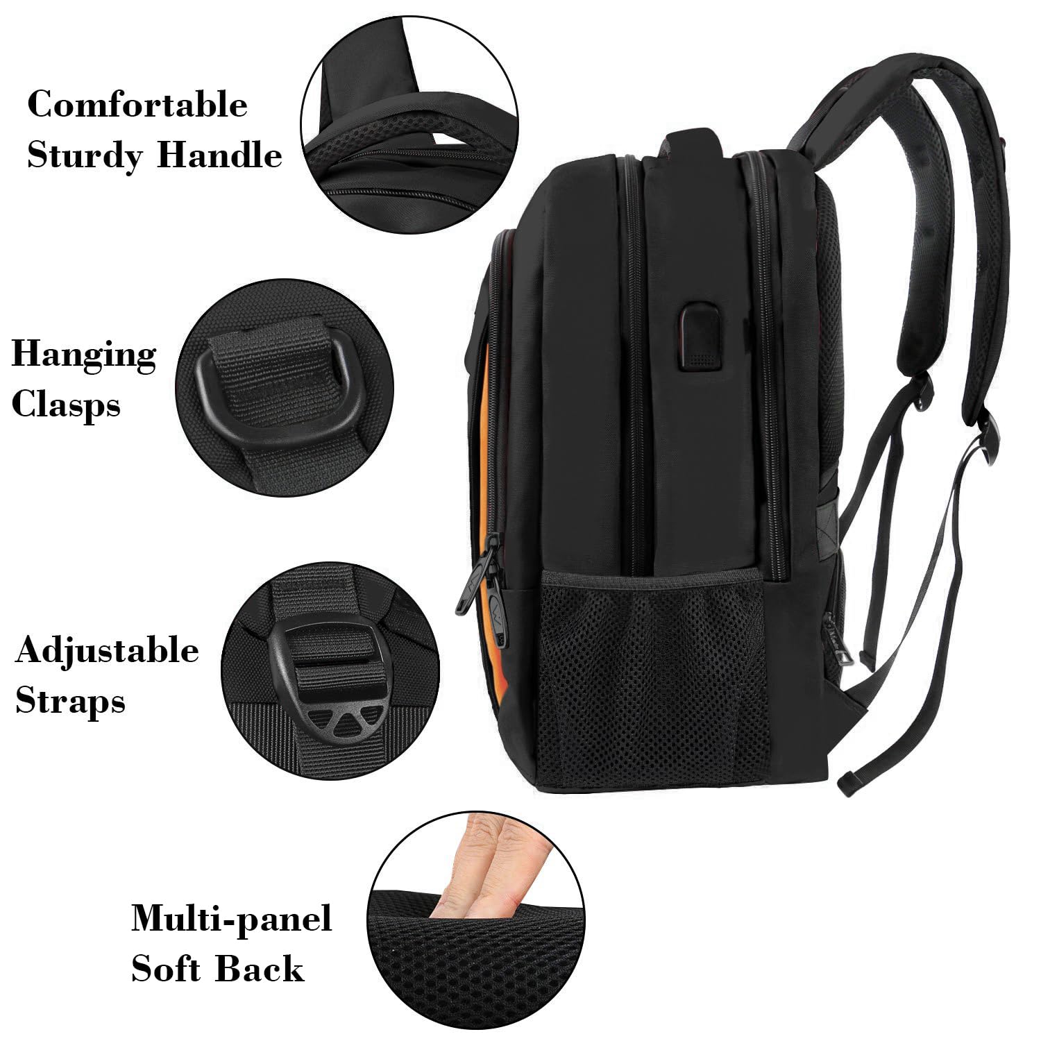 USB PORT DESIGN: With built in USB charger outside and built in charging cable inside,this usb laptop backpack offers you a more convenient way to charge your phone while walking. Please noted that this backpack doesn't power itself, usb charging port only offers an easy access to charge