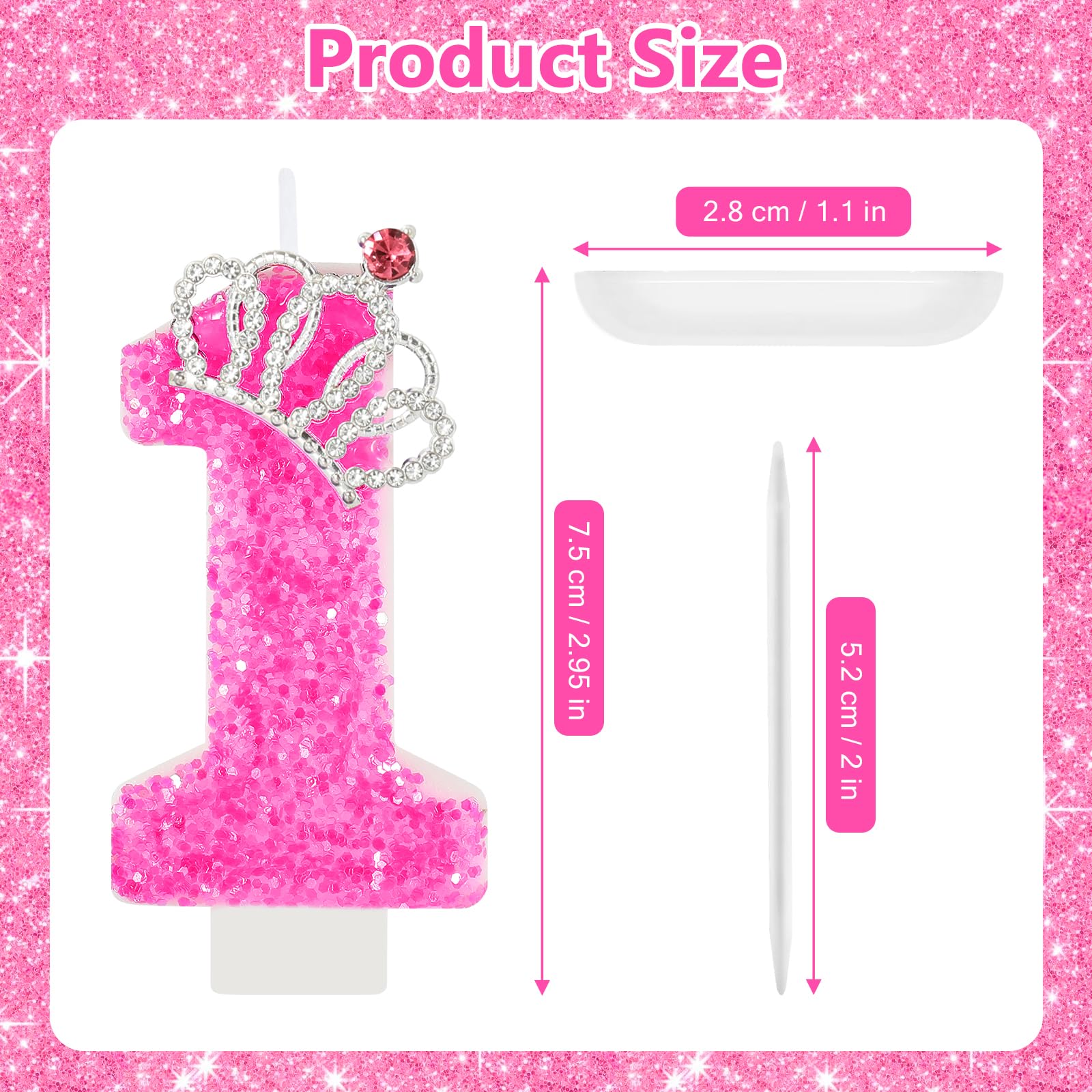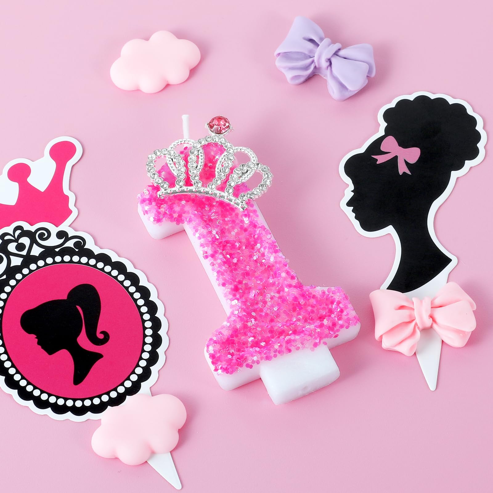 【Royal Elegance】Adorned with a exquisite crown and dazzling rhinestones, our hot pink number candles sparkle with luxury, adding a noble touch to your pink dreams party, singer-themed celebration, or any special gathering.