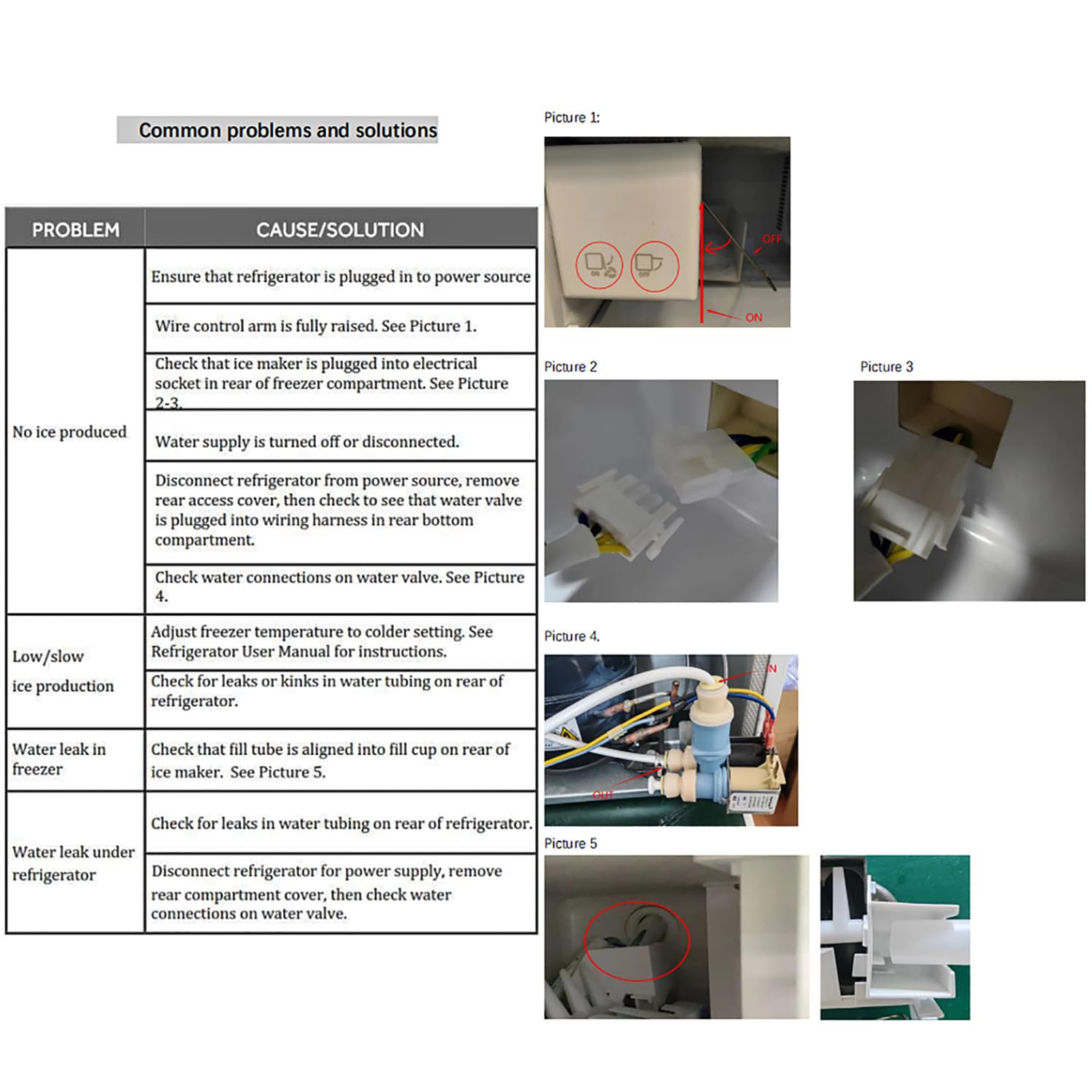 Fix Common Problems: Ice maker not making ice; Ice maker won’t dispense ice; Noisy. Comes with a new built-in harness. Simply unplug and install the new unit