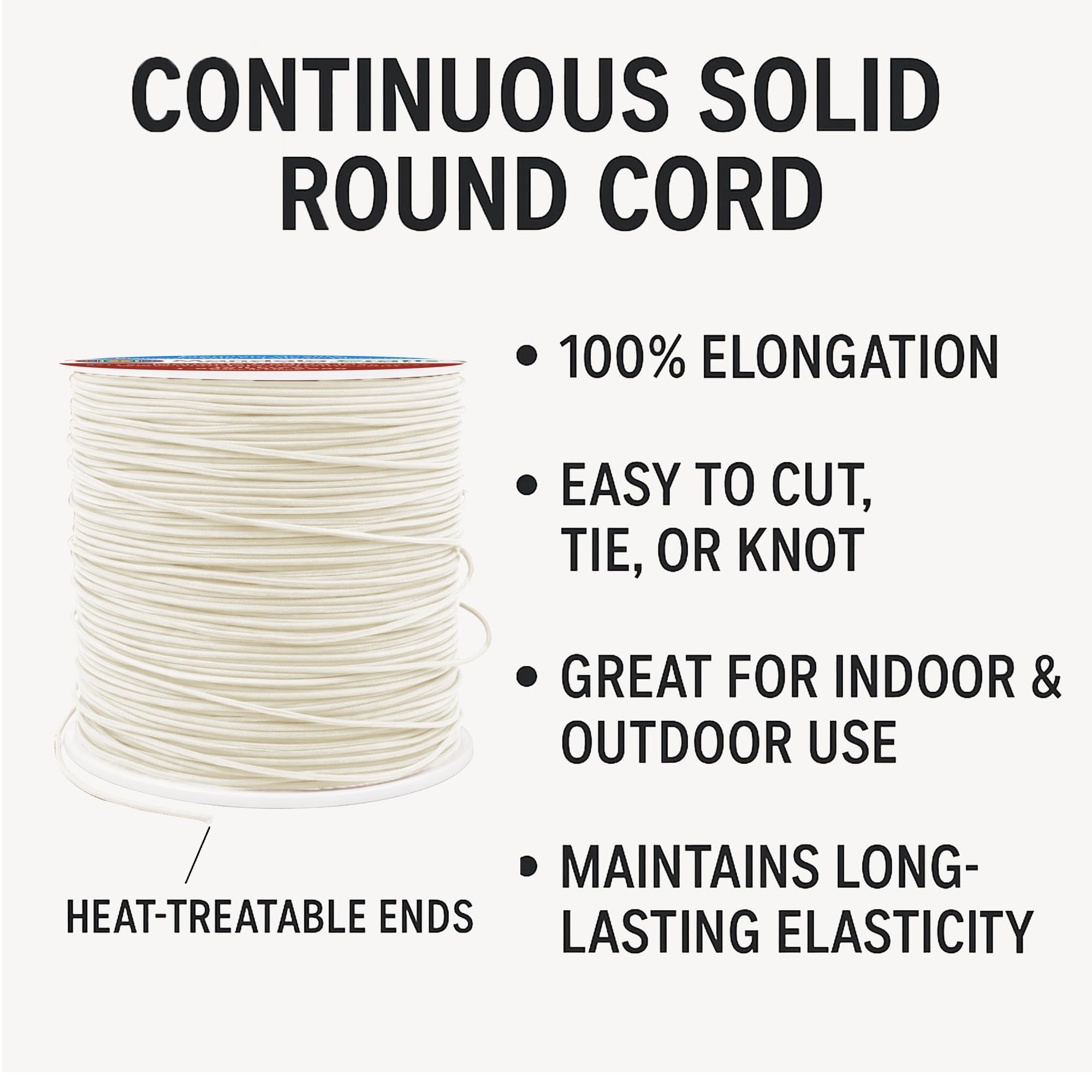 Ivory Round Elastic Cording: The soft & flexible thin elastic cord made from nylon & rubber is colorfast, washable, & dryable. As strong as rubber string, the elastic rope cord serves as durable stretchy sewing string and elastic craft string.
