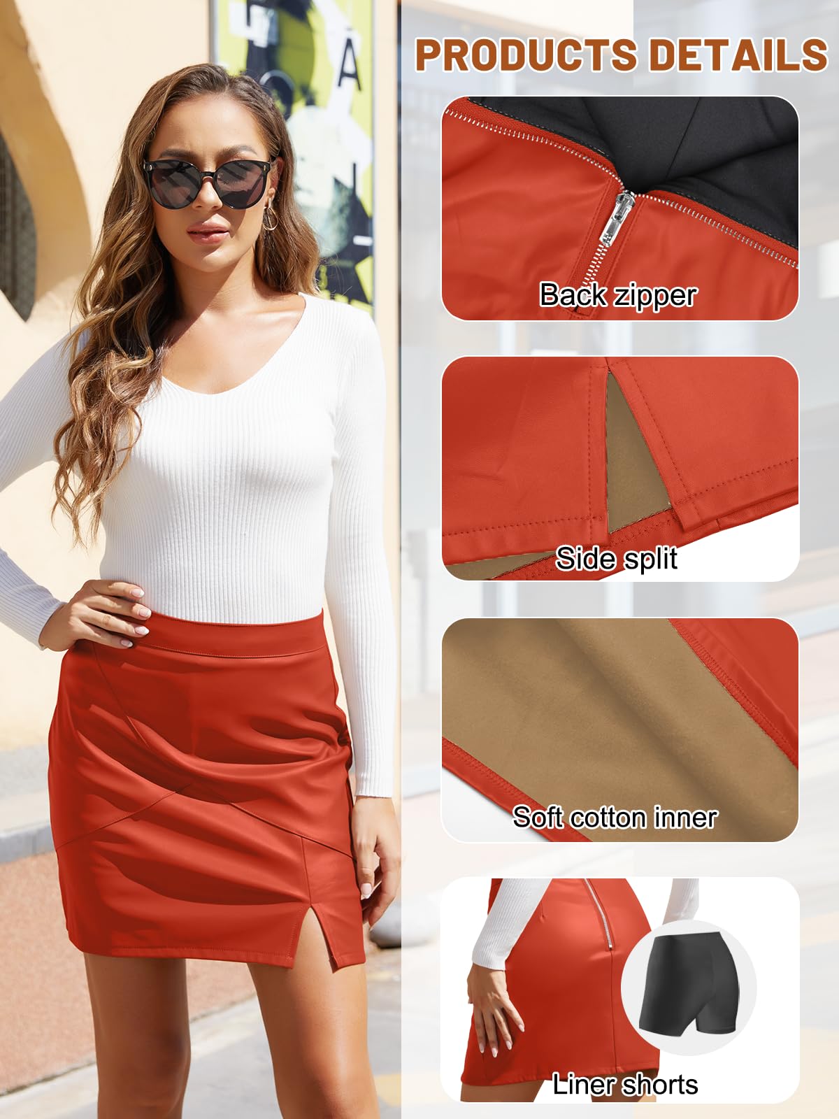 Premium Fabric: The high waisted mini skirt is composed of premium faux leather, cotton, and soft liner shorts, lightweight, breathable, providing you with an excellent wearing experience while hanging out with your sisters