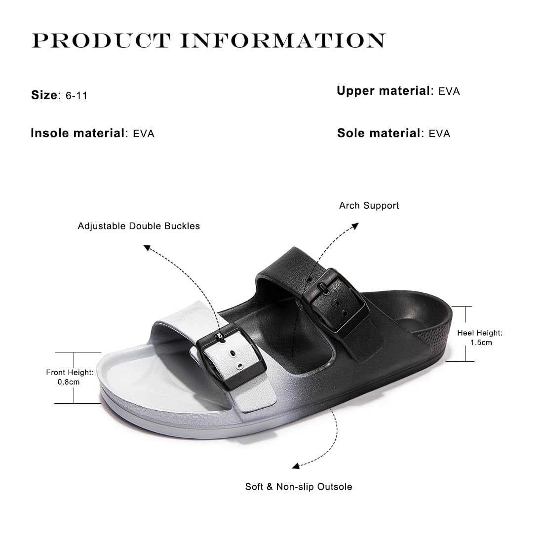 Custom Fit with Dual Adjustable Straps: The FUNKYMONKEY sandals women feature two fully adjustable straps that conform to the unique shape of your feet for a secure, personalized fit. To ensure maximum comfort and avoid returns, please check the size chart before ordering your new pair of womens slides.