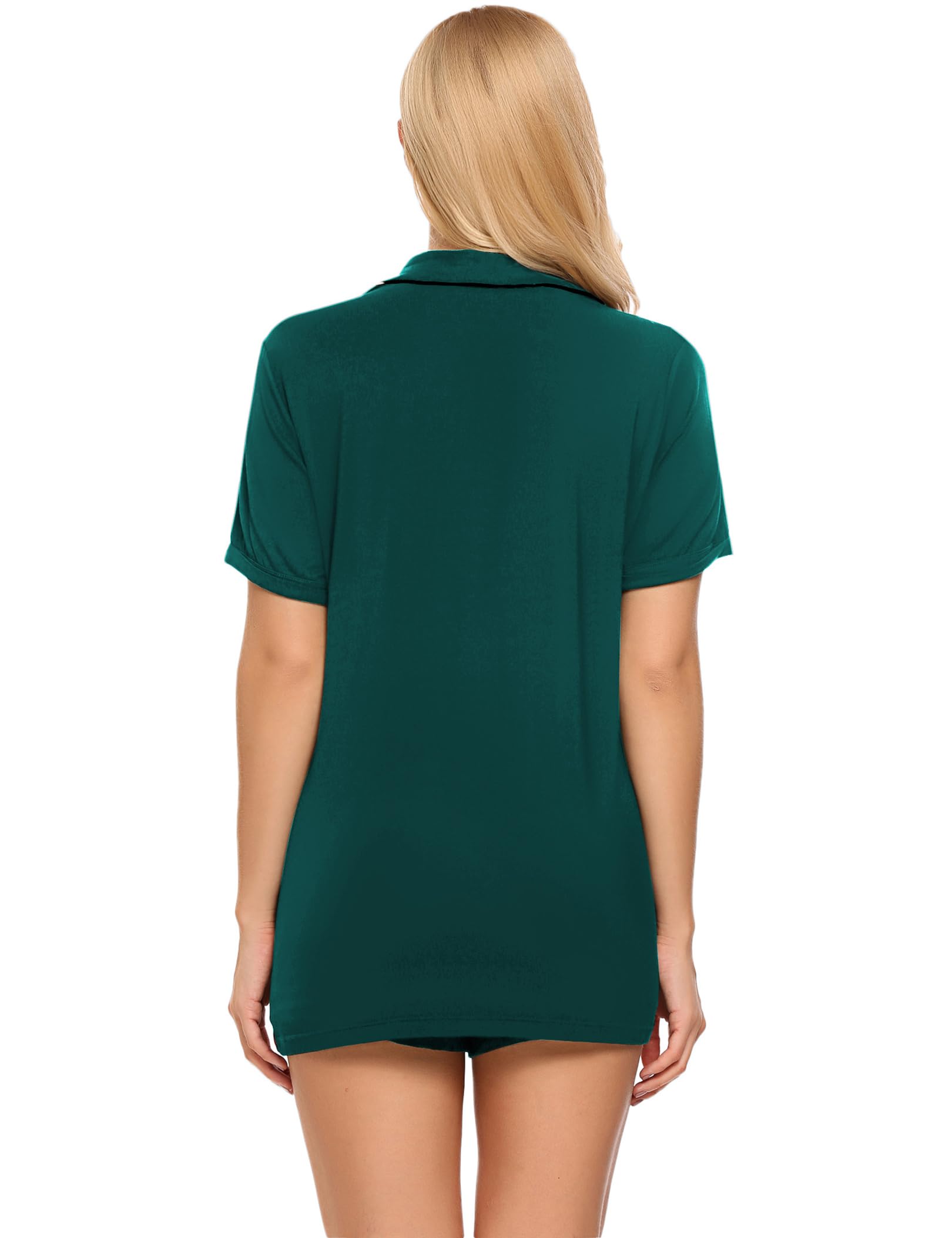 VERSATILE STYLE: Classic two-piece loungewear with short-sleeve top and boxer shorts. Relaxed fit suitable for sleeping, lounging, or casual wear.