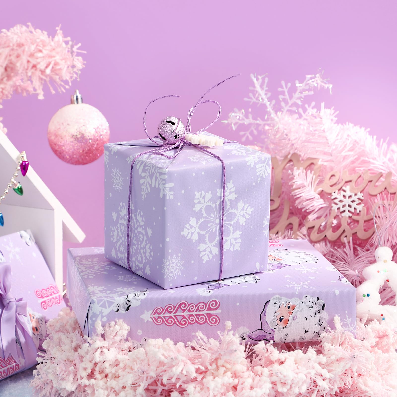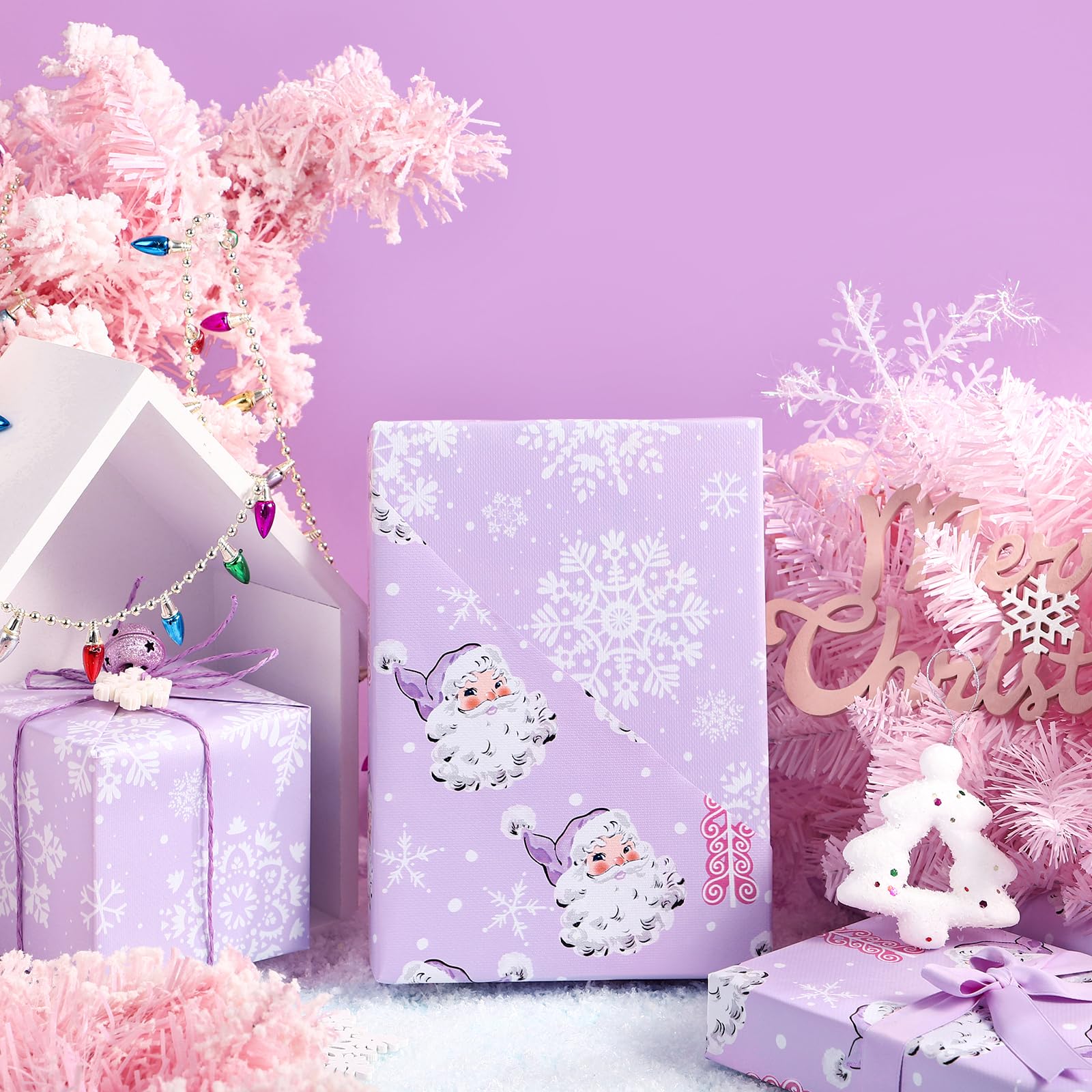Perfect Size: Each roll measures 17 inches wide x 33 feet long, which provides you with a total of 46.5 square feet of paper. It's perfect for any small or medium - sized gift and is also very convenient to store. Reversible Design: Purple santa claus with embossed printed on one side, purple and white snowflake printed on the reverse. Two different designs make unique and varied gift presentations easy. Premium Quality: Created with high-quality paper materials, thick and not easily tear or rip. Item came with shrink film to prevent wrapping paper from scratches and reduce dust. Use All Winter: Whether it's the joyous celebration of Christmas or the holiday season filled with family gatherings and gift - giving traditions, it is an outstanding choice. It is also great for decorating the Christmas tree. Wrap Your Love for Christmas: You can wrap your love with our special Christmas wrapping paper, adding a splash of color to all of your gifts. Your family, children, and friends will feel your sincere Christmas wishes this holiday season. Quality Customer Service: Any question about products or orders, please feel free to contact the customer service, we will try our best to solve the problem.