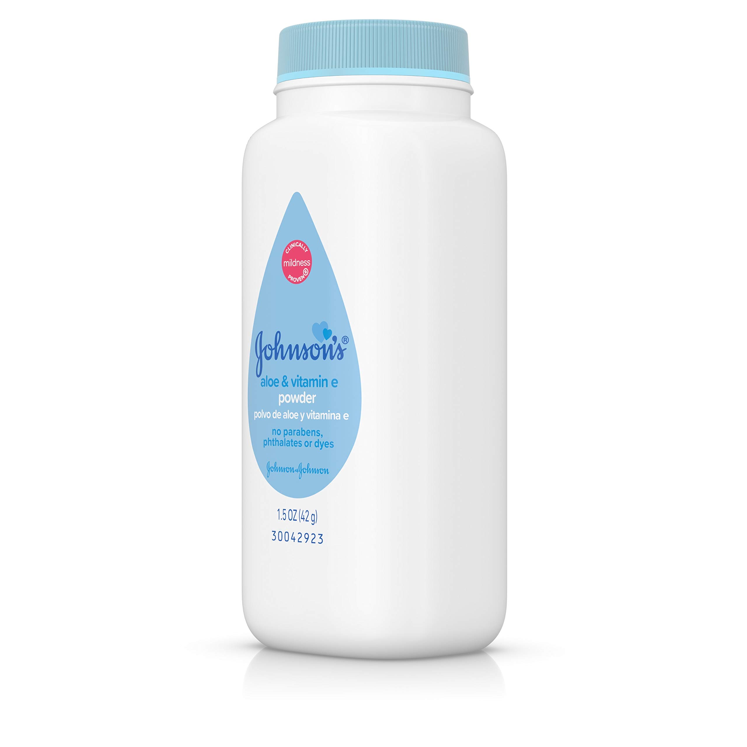1.5-ounces of Johnson's baby powder with naturally derived cornstarch, aloe, and vitamin E provides a gentle way to soothe your baby's skin and leave it feeling soft and smooth