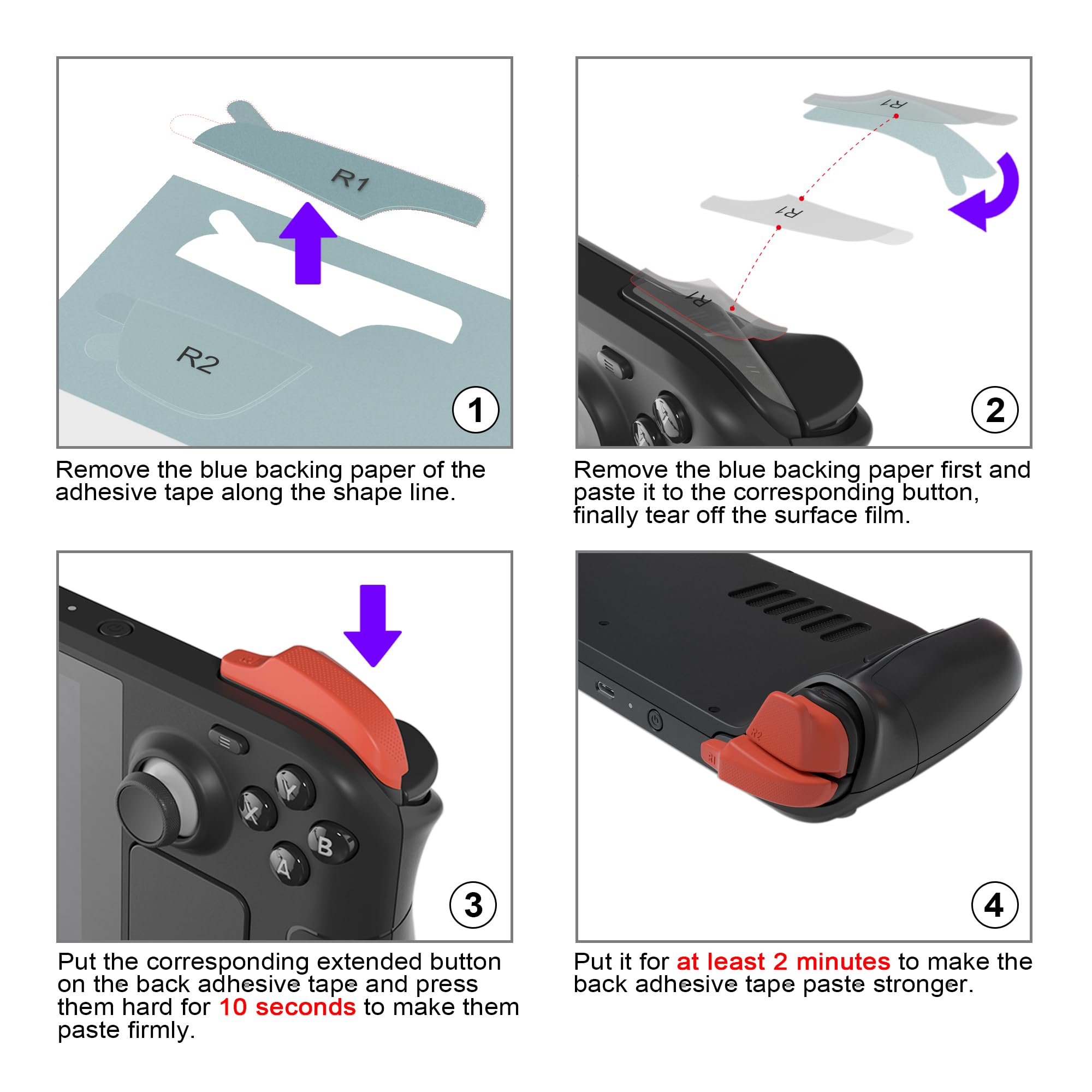 Package includes 1 set of L1L2 R1R2 bumper and triggers extension for steam deck