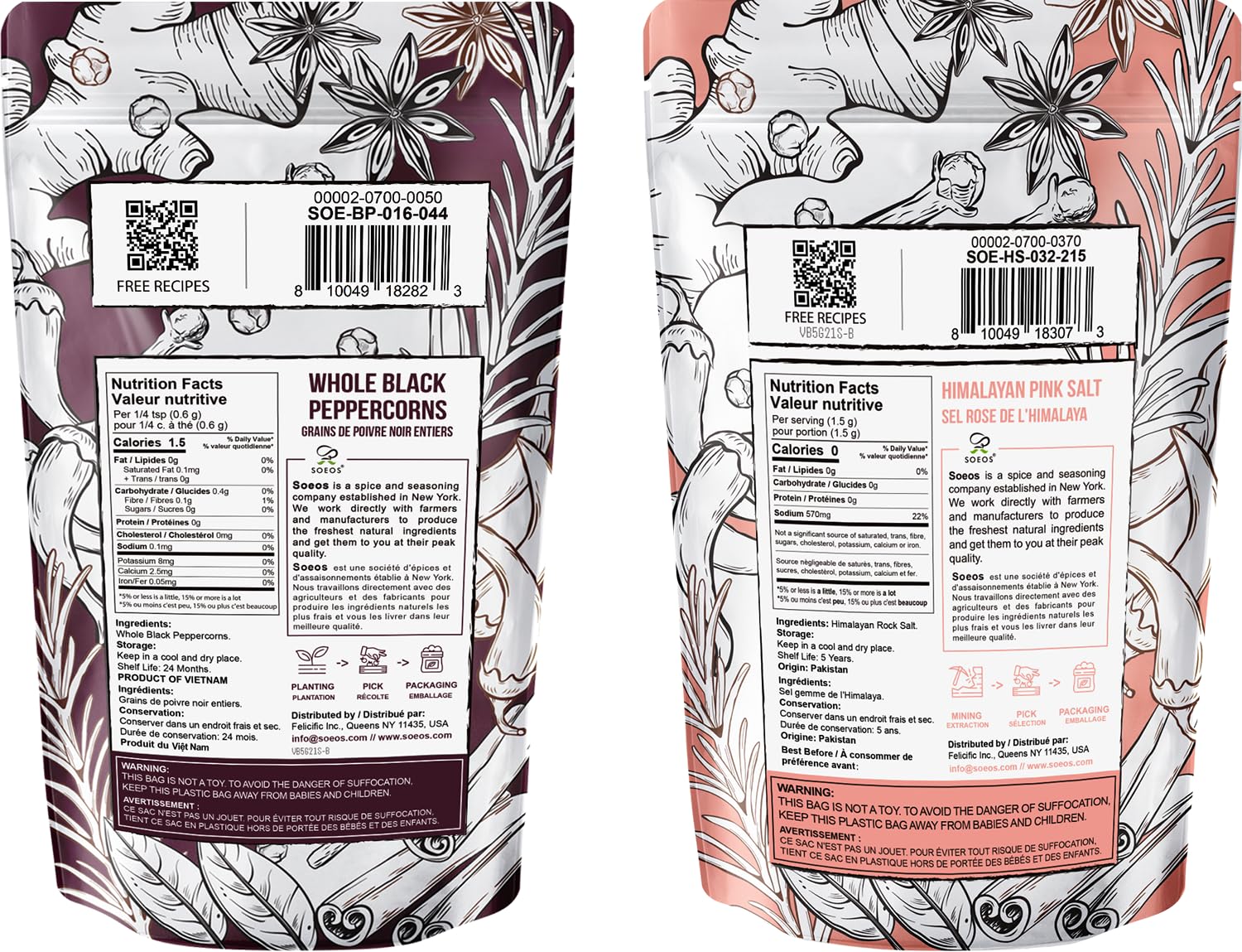 ETHICALLY SOURCED: Pink Himalayan salt is a type of rock salt mined in the depths of the Himalayan mountains of Pakistan. Whole Black Peppercorns comes directly from the farmers in Vietnam. All peppercorns are hand-selected before packing them.