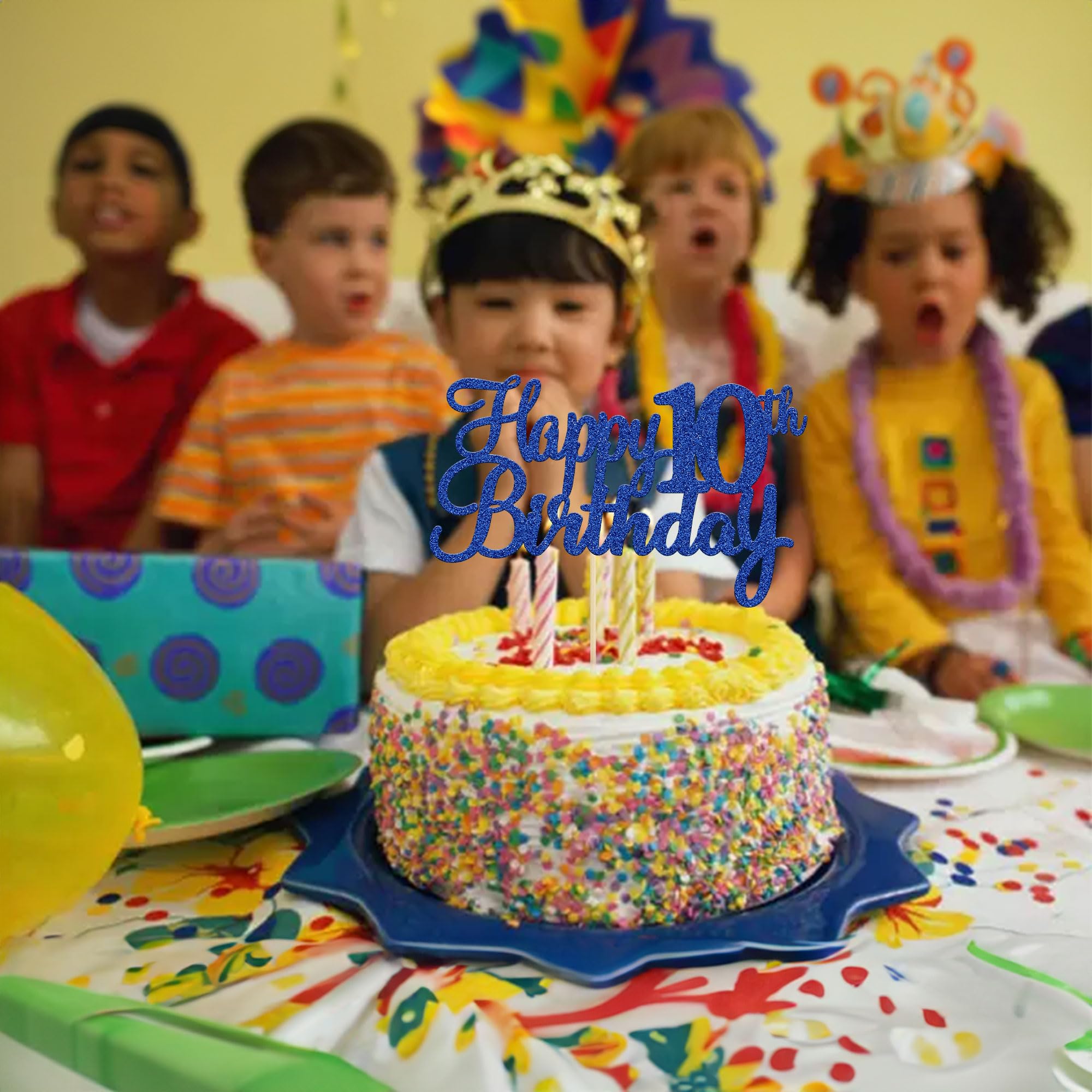 💖💖Package included: 1Pc Happy 10th Birthday Cake Toppers. Comes with assembled, so you can insert into your cake, which make your cake more interesting.