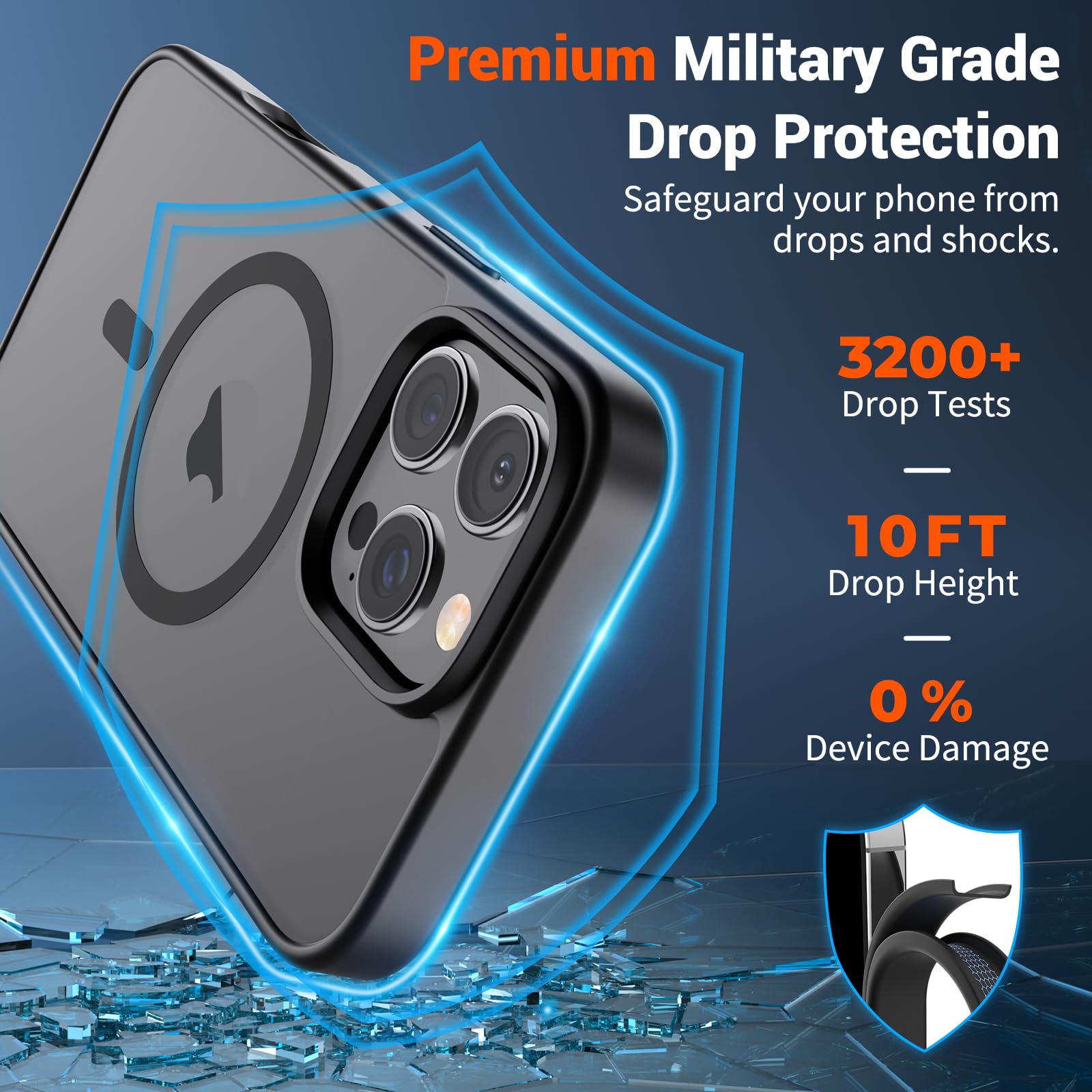 Shock Protection: Passing military drop tests up to 10 feet, your device is effectively protected from violent impacts and drops