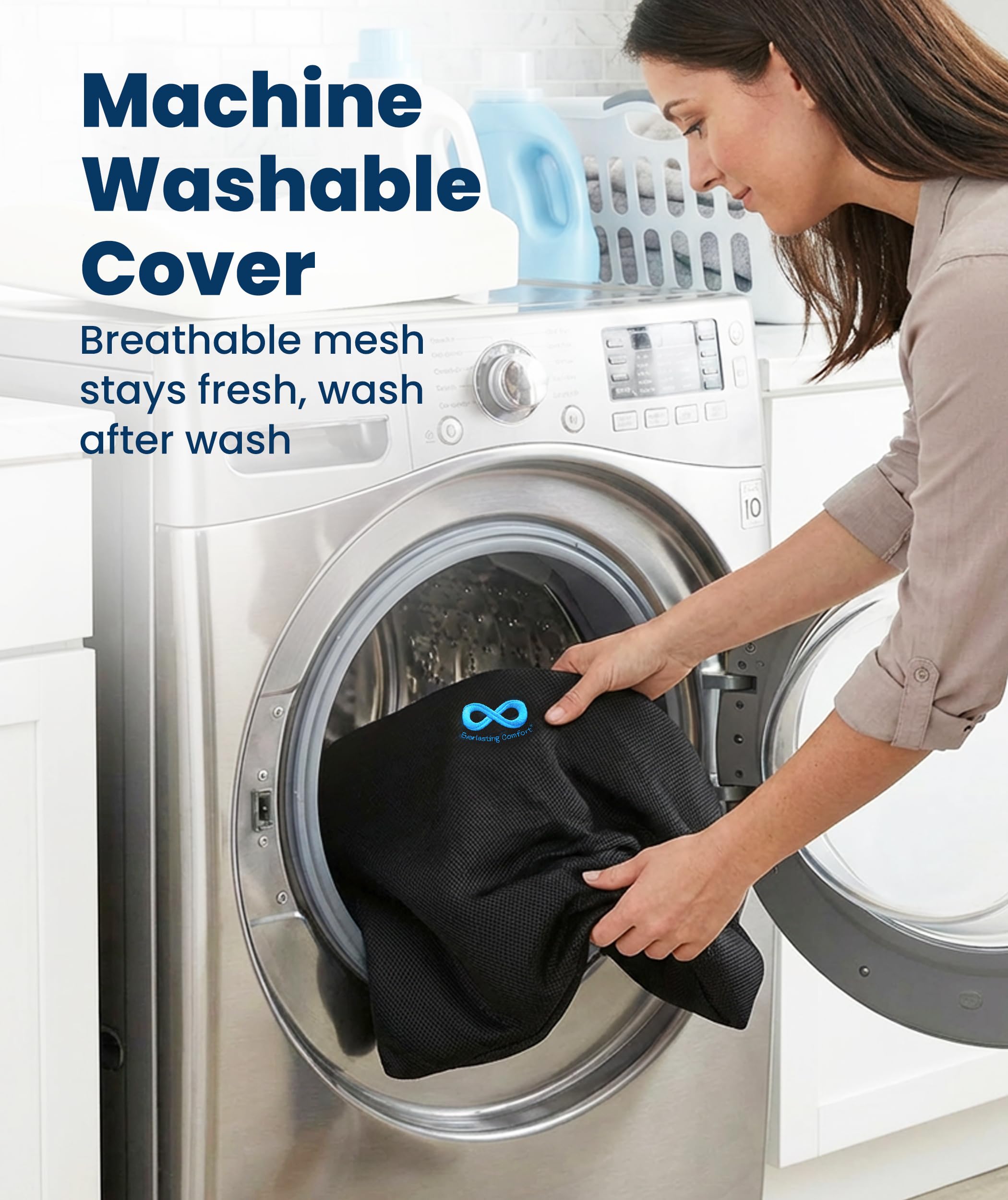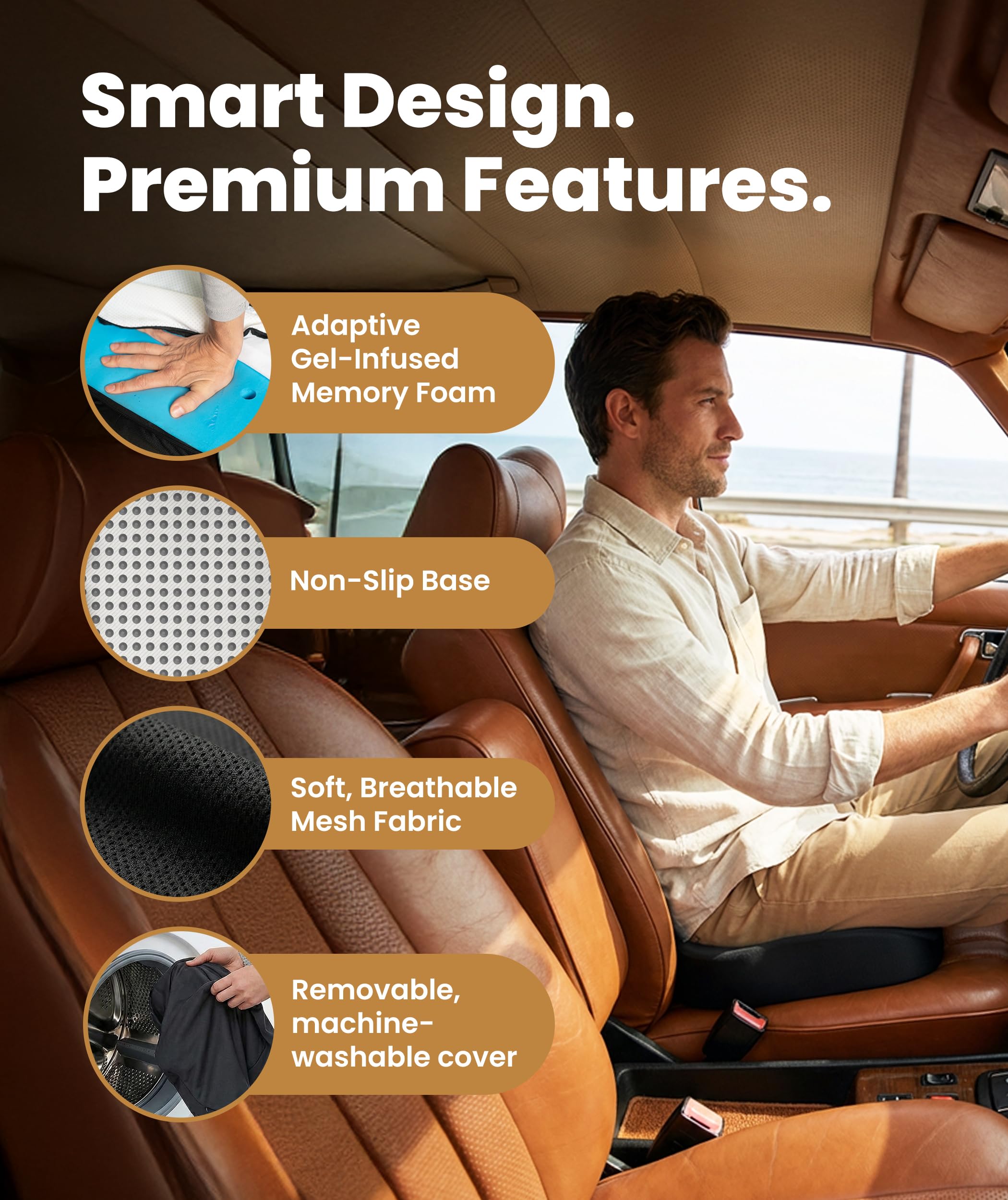 SOFT & BREATHABLE COVER: Our car seat cushion for long driving features a machine-washable, breathable cover that is easy to clean; The non-slip bottom on the covers keep the pillow in place, ensuring stability and comfort. Our seat cushion for office chair use is padded to provide a comfortable seating experience in cars. This coccyx seat cushion for lower back pain relief doubles as a car seat cushion, suitable for long travel or commute