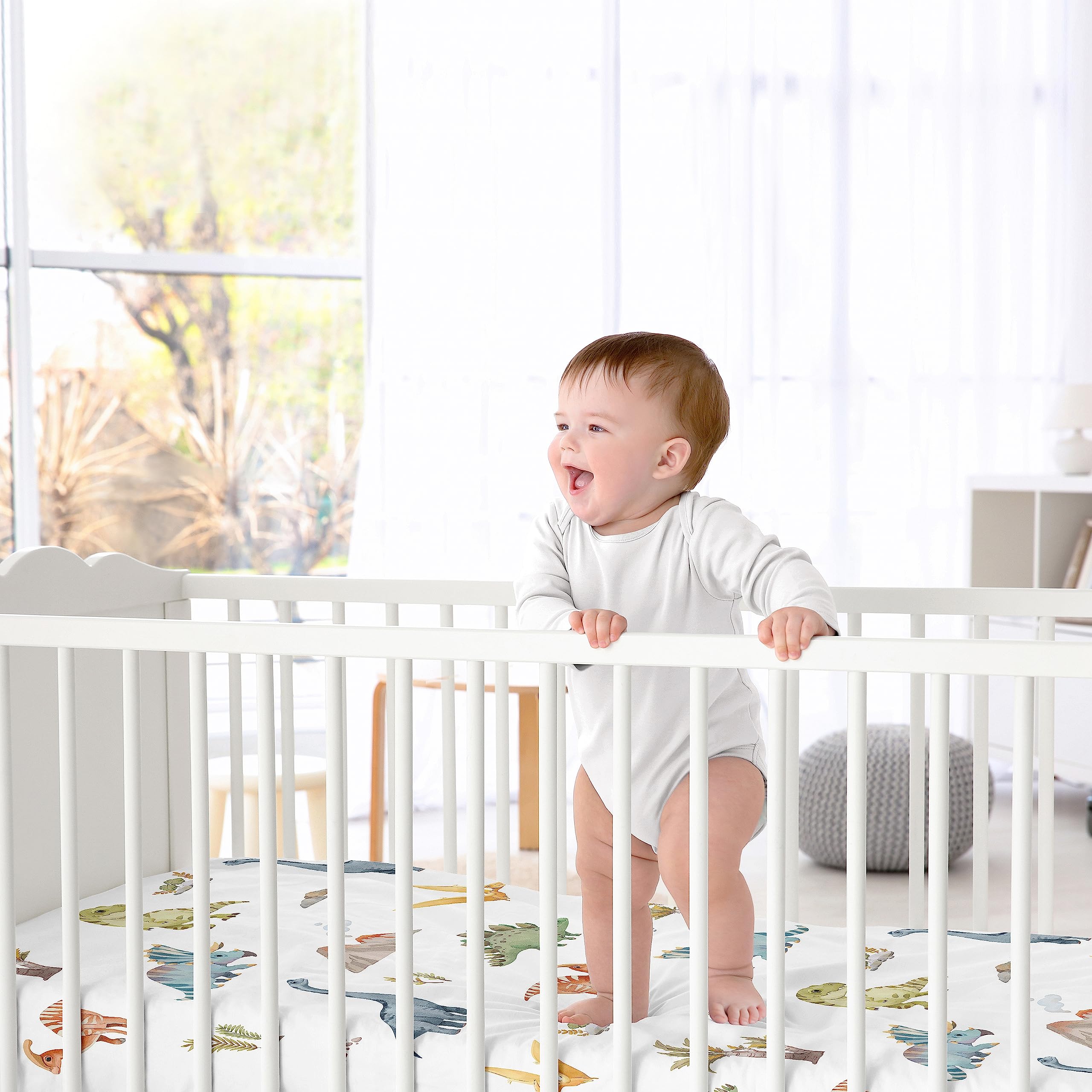 DESIGNED IN THE USA: By real parents who understand the need for comfort, practicality, and style. Sweet Jojo Designs is a small, women owned business. The mom's on our team know a crib mattress sheet is first priority for your baby essentials to ensure a restful night of sleep. We use top fabrics and designs to create soft crib sheets that are stretchy & comfortable for your infant or toddler. We've studied the latest trends in dinosaur crib sheets for baby boy to bring you the finest product.
