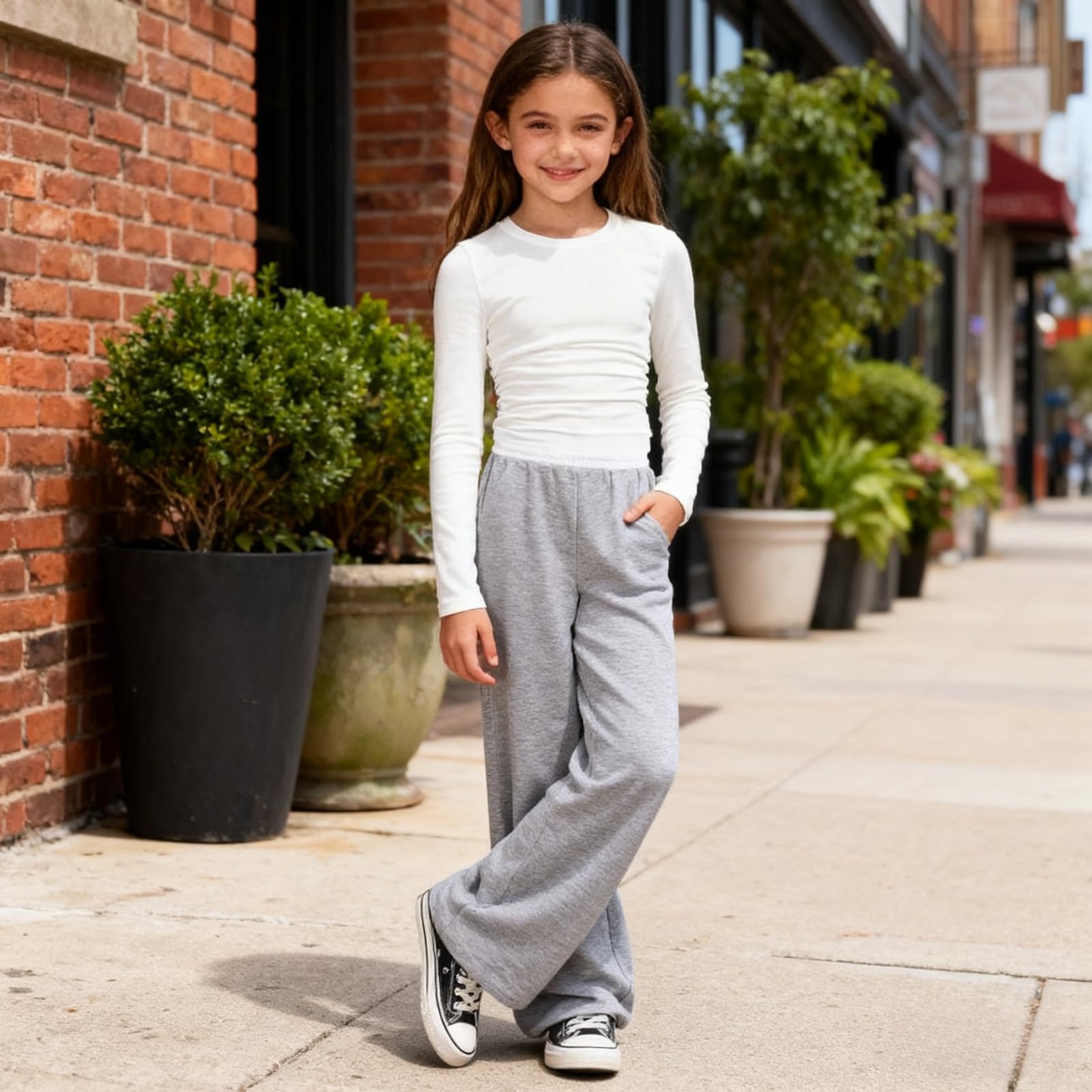 Unique Design: This girls' set features a solid-color cute waist-cinching White Long Sleeve Top paired with high-waisted pants, creating an elegant and adorable outfit that enhances your child's grace and beauty.