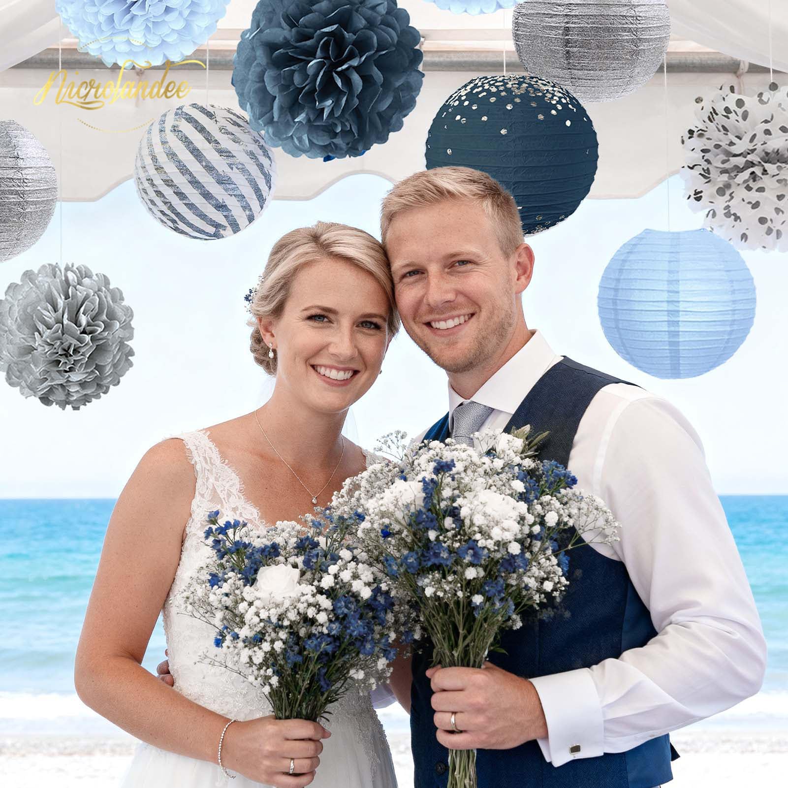 Package includes: 6 PCS tissue pompoms and 6 PCS paper lanterns. The quantity of this wedding decoration is enough to meet your decoration needs. You can hang this paper decoration set from the ceiling or use them as table decorations according to your decoration ideas
