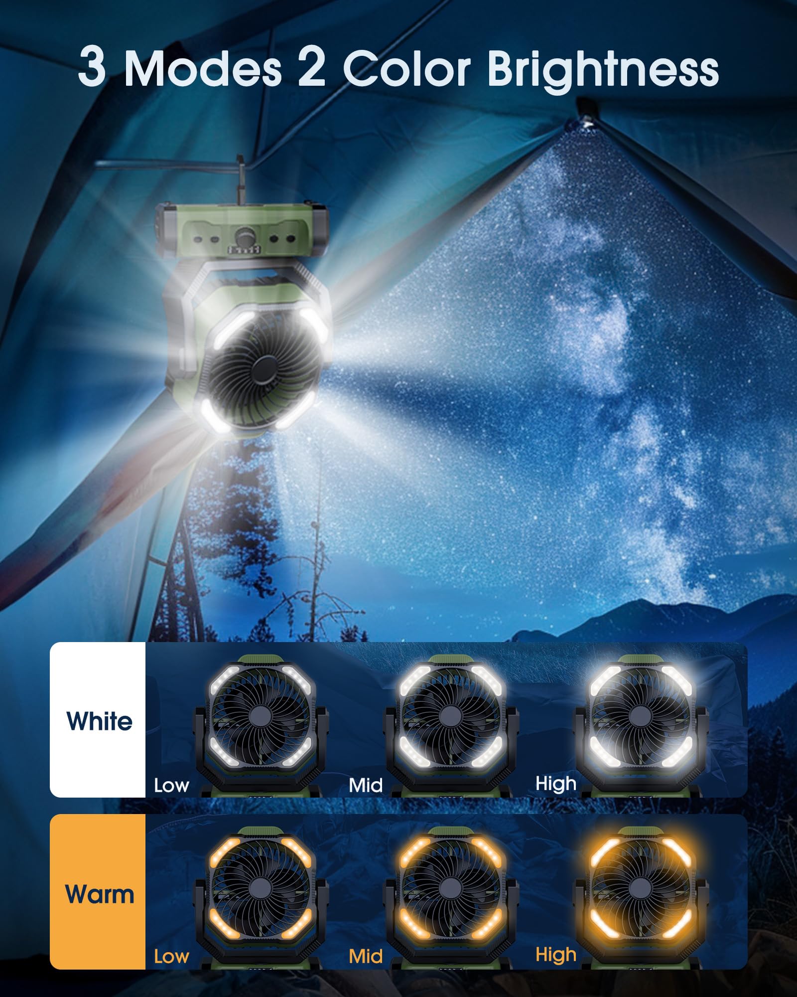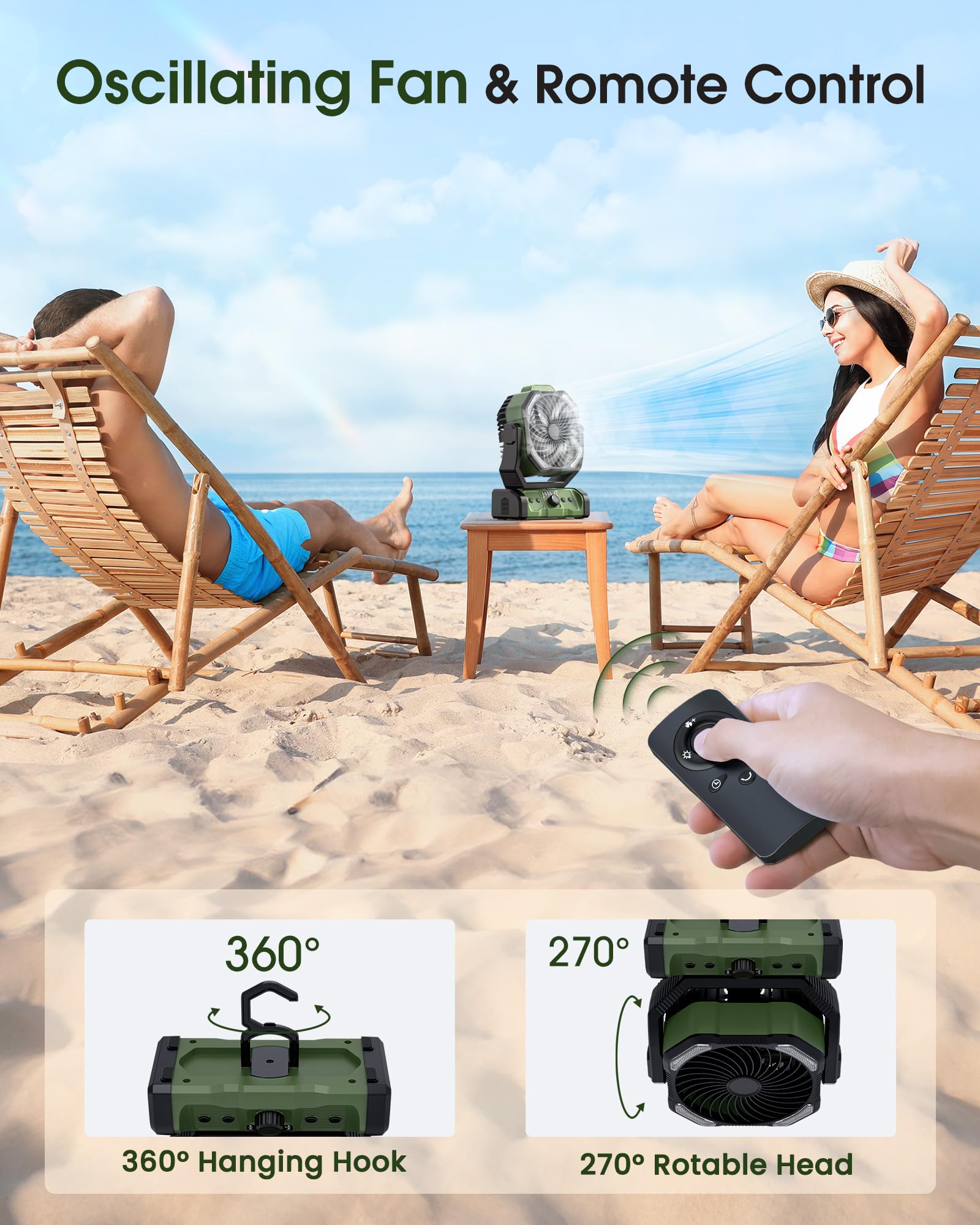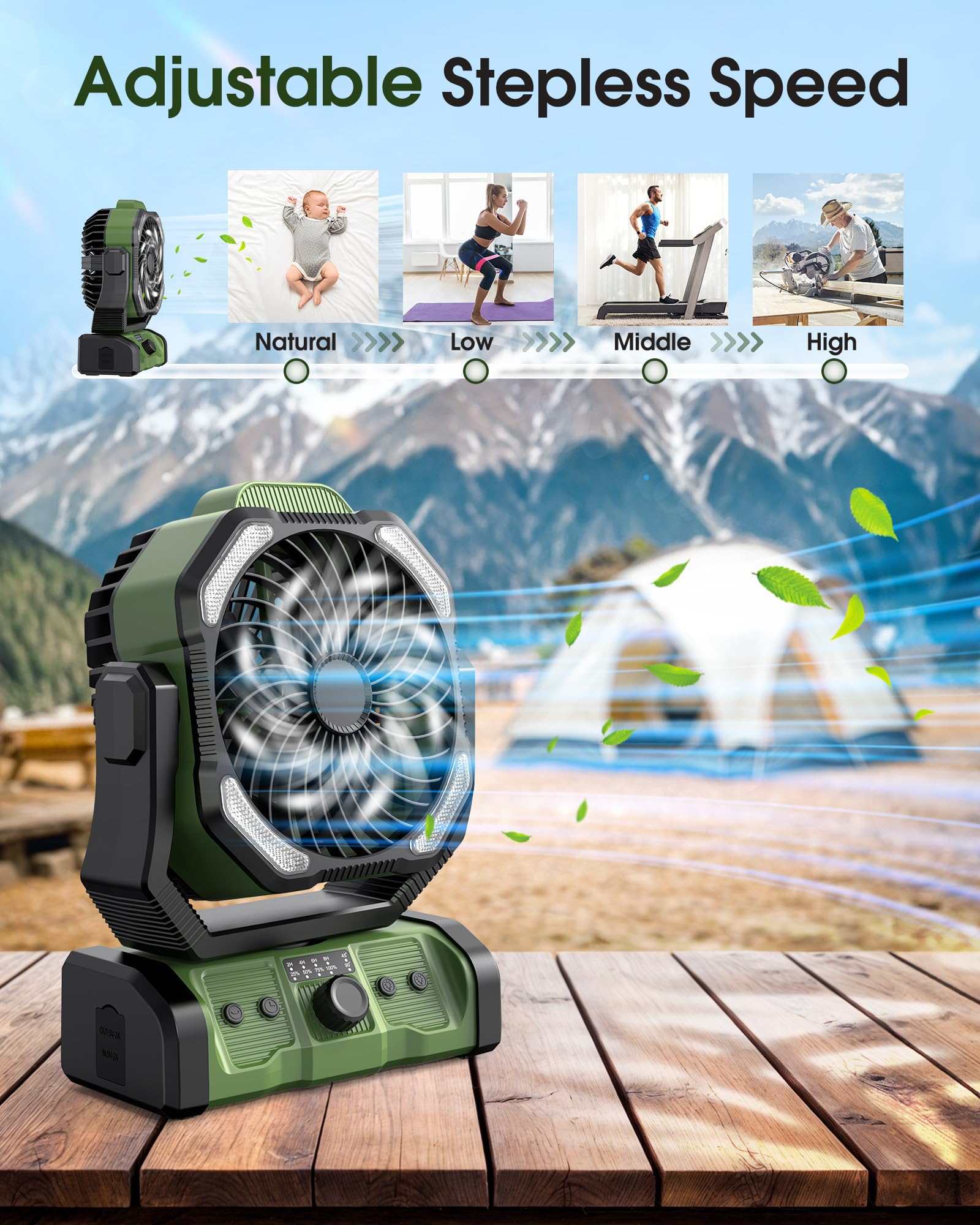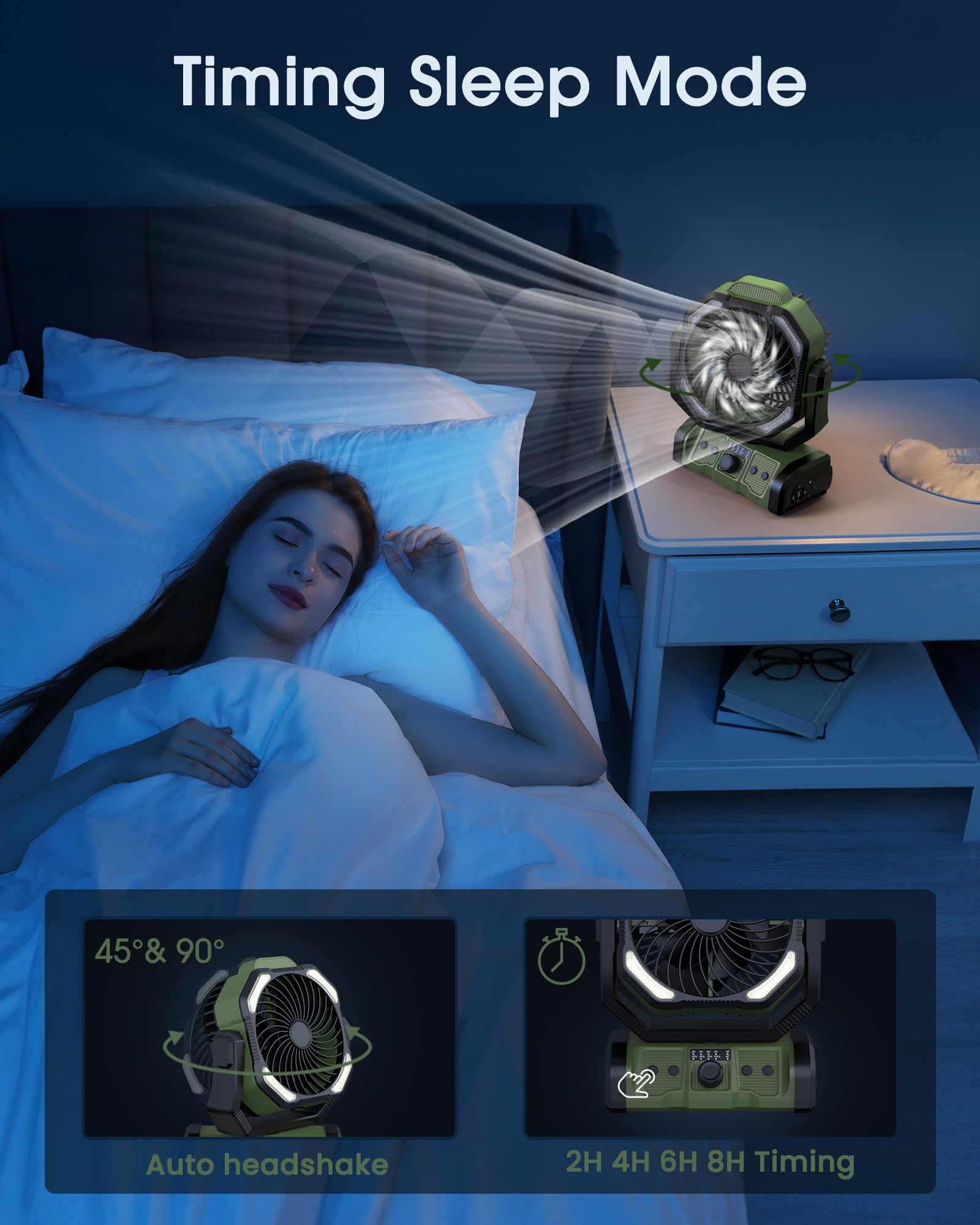 Camping Fan with Timer: The cordless fan is equipped with a smart timer function, allowing you to set it to automatically turn off after 2H, 4H, 6H, or 8H, helping to save energy by preventing prolonged standby time. You can easily check the battery level, timer settings, and oscillation angles on the clear display panel. If you encounter any issues during use, please feel free to contact us, we will provide technical assistance and solutions within 24 hours