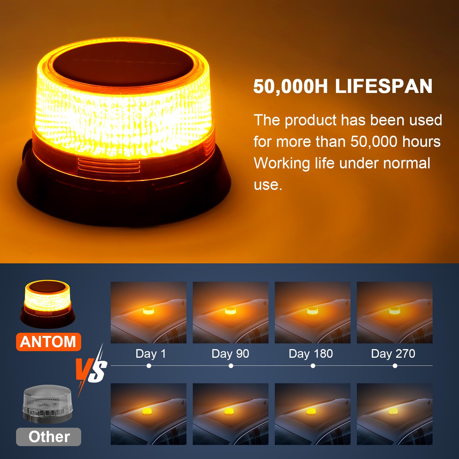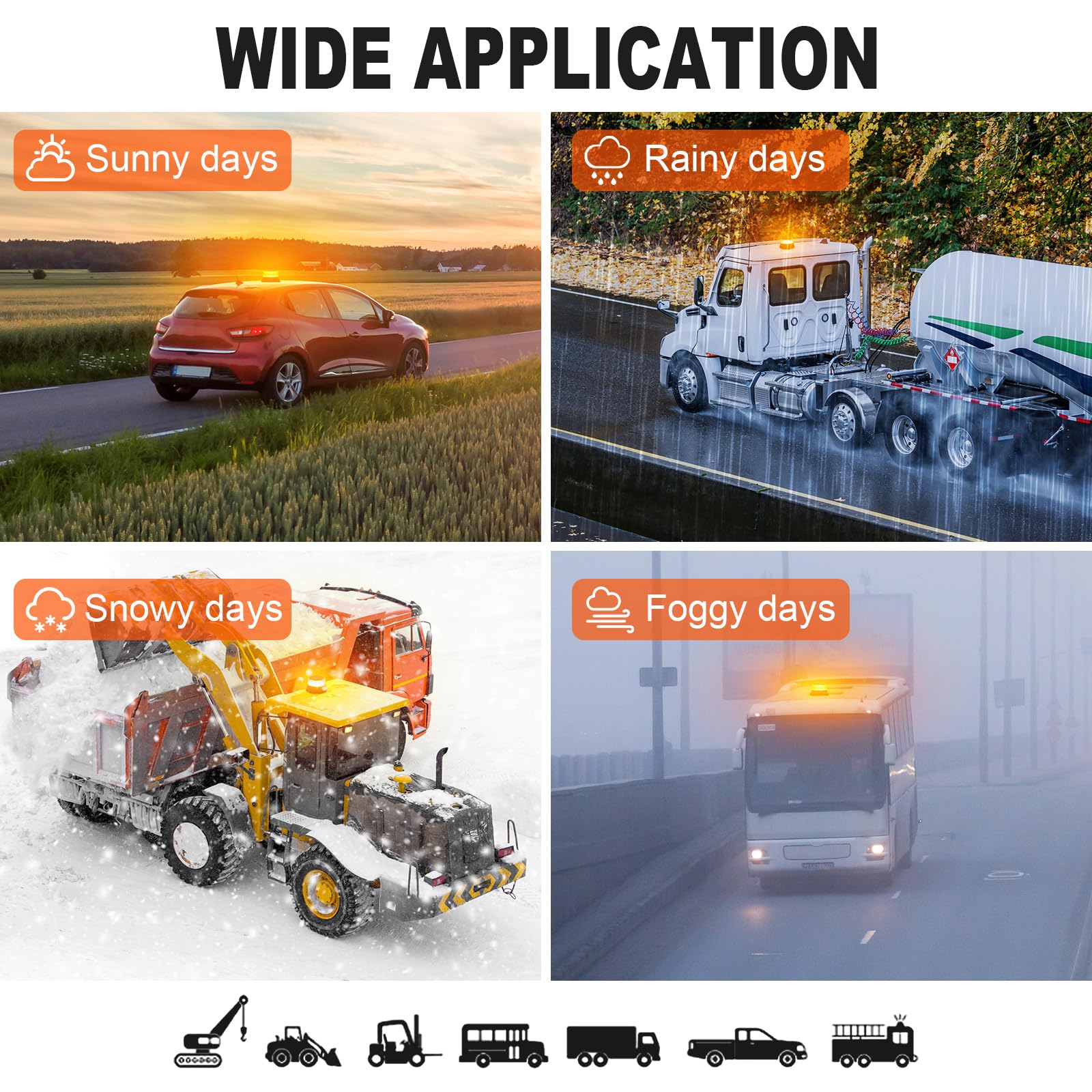Universal Compatibility: this emergency lights is perfect for working vehicles, construction trucks, forklifts, tractors, golf carts, school buses, snow plow and more. great for safety warnings in a variety of scenarios