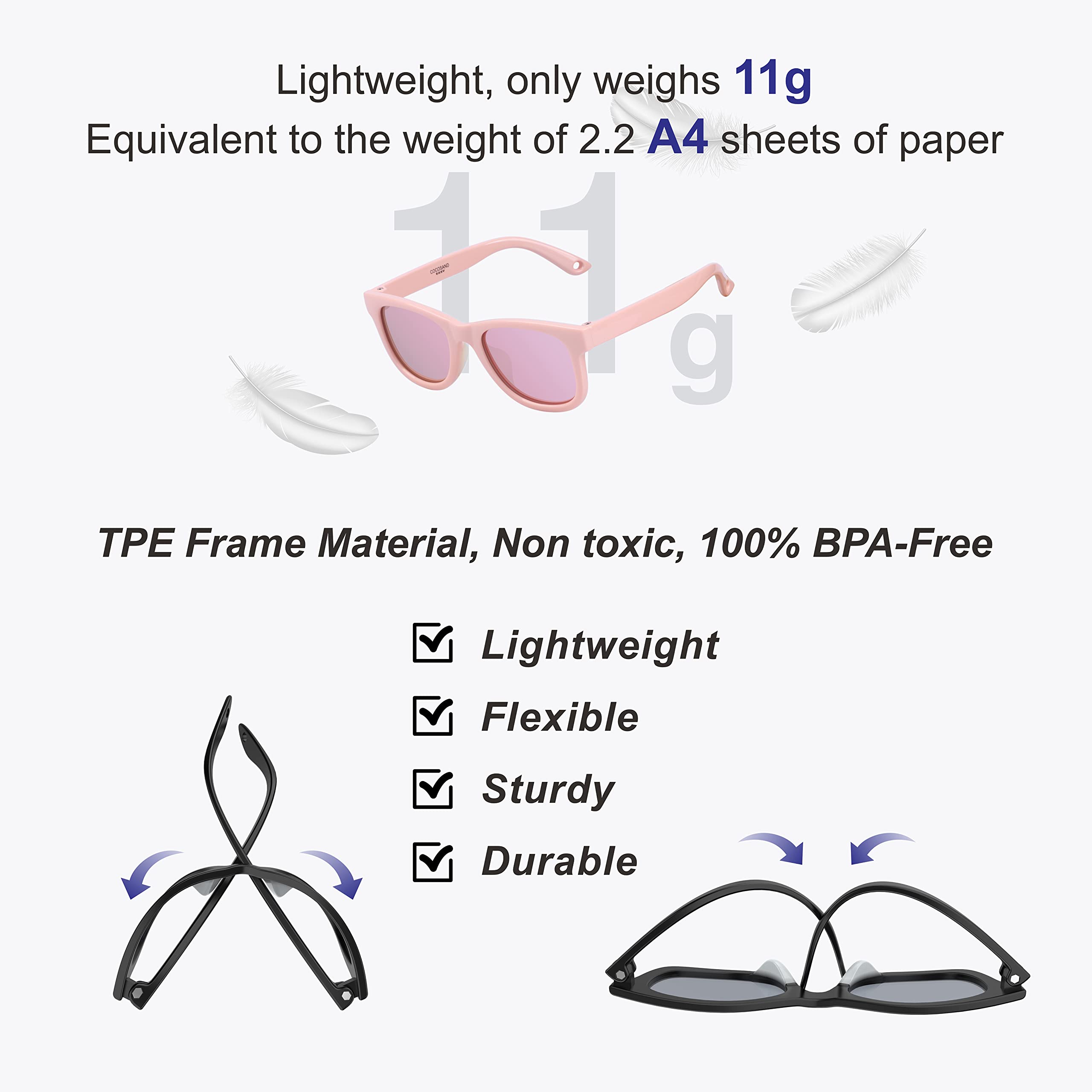 Lens: Polarized lenses. Blocks UVA, UVB and harmful blue ray. HD vision, Glare Free. Wearing it in outdoor activities can reduce eye fatigue, reduce the damage caused by sunlight to baby's eyes