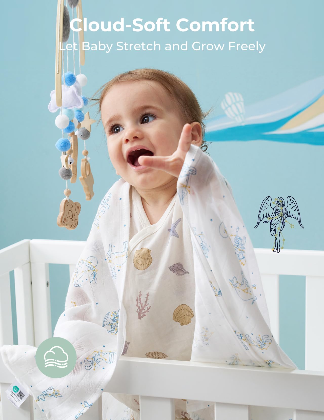 【Silky Texture Material, Softness Makes Gentle Love for Baby's First Born】 Momcozy practical ultra soft newborn muslin swaddle blankets are made from natural cotton and the viscose derived from bamboo, which is friendly for baby delicate skin. No weird odors or blurred designs, gentle and cushy swaddle blanket provides a comfortable surface and a safe sleeping environment for babies helping soothe your newborn and keeping them calm when they are in sleep.