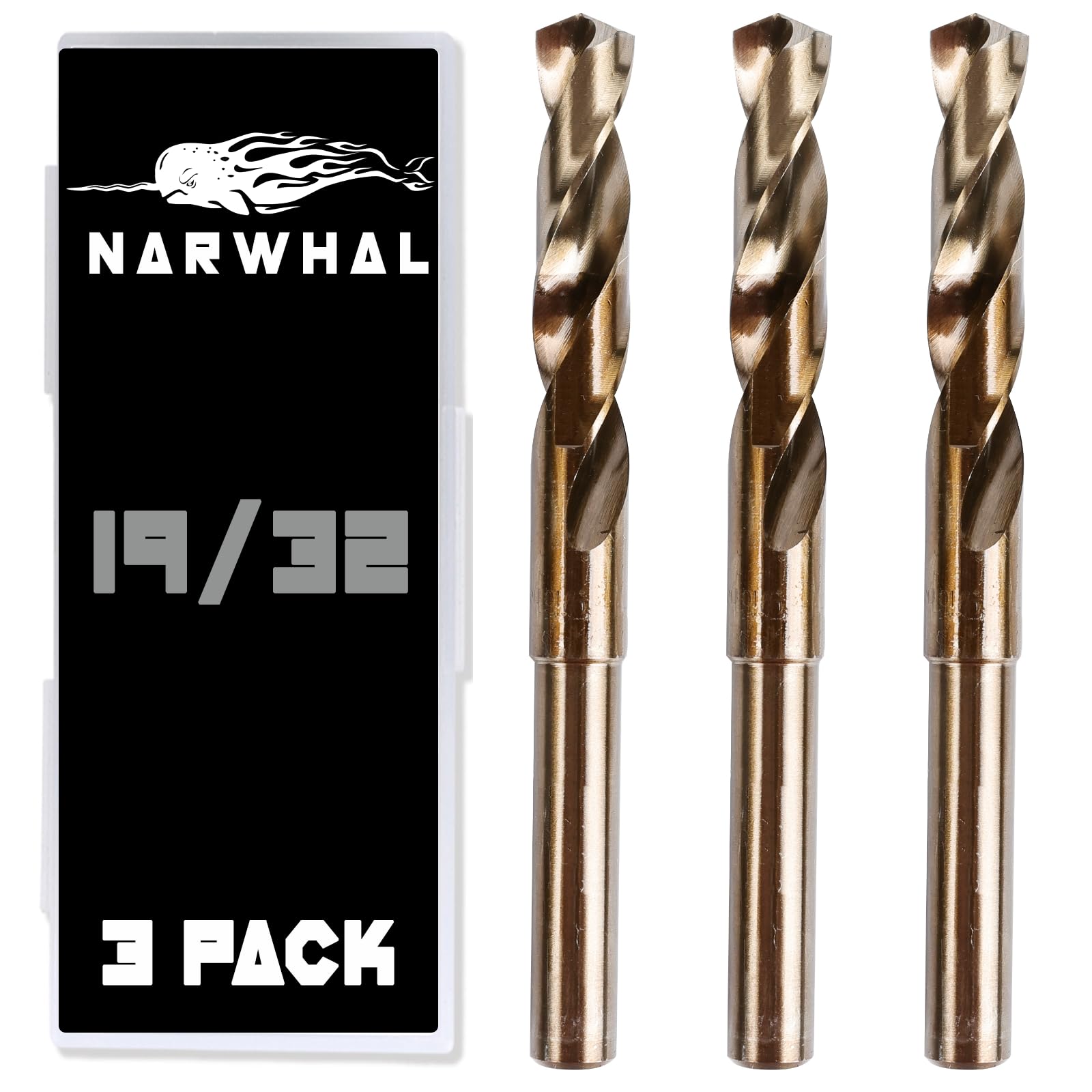 3 PACK OF 19/32" COBALT DRILL BITS - 19/32" Diameter with a Flute Length of 3" and Total length of 6"