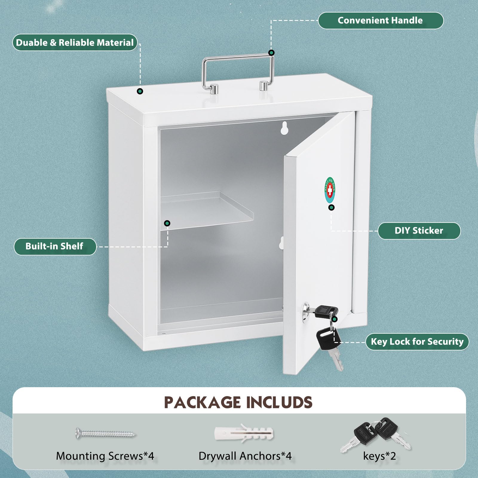 【WALL MOUNT & PORTABLE】: Each medical cabinet features pre-drilled mounting holes and mounting hardware. With Simple installation steps, this medicine lock box an be mounted on the wall and saves space. In emergency situations, it can also be used as a first aid kit for medical rescue.
