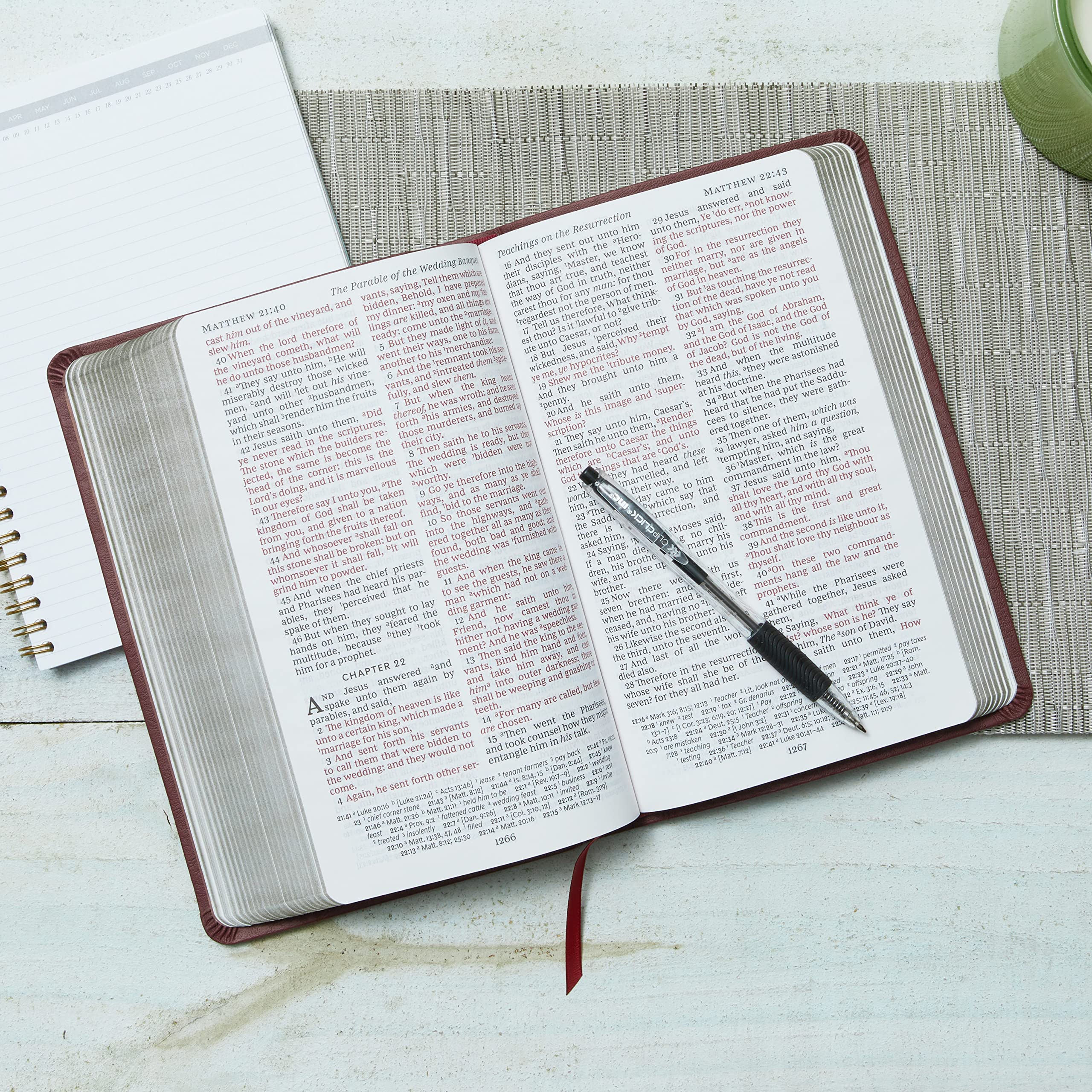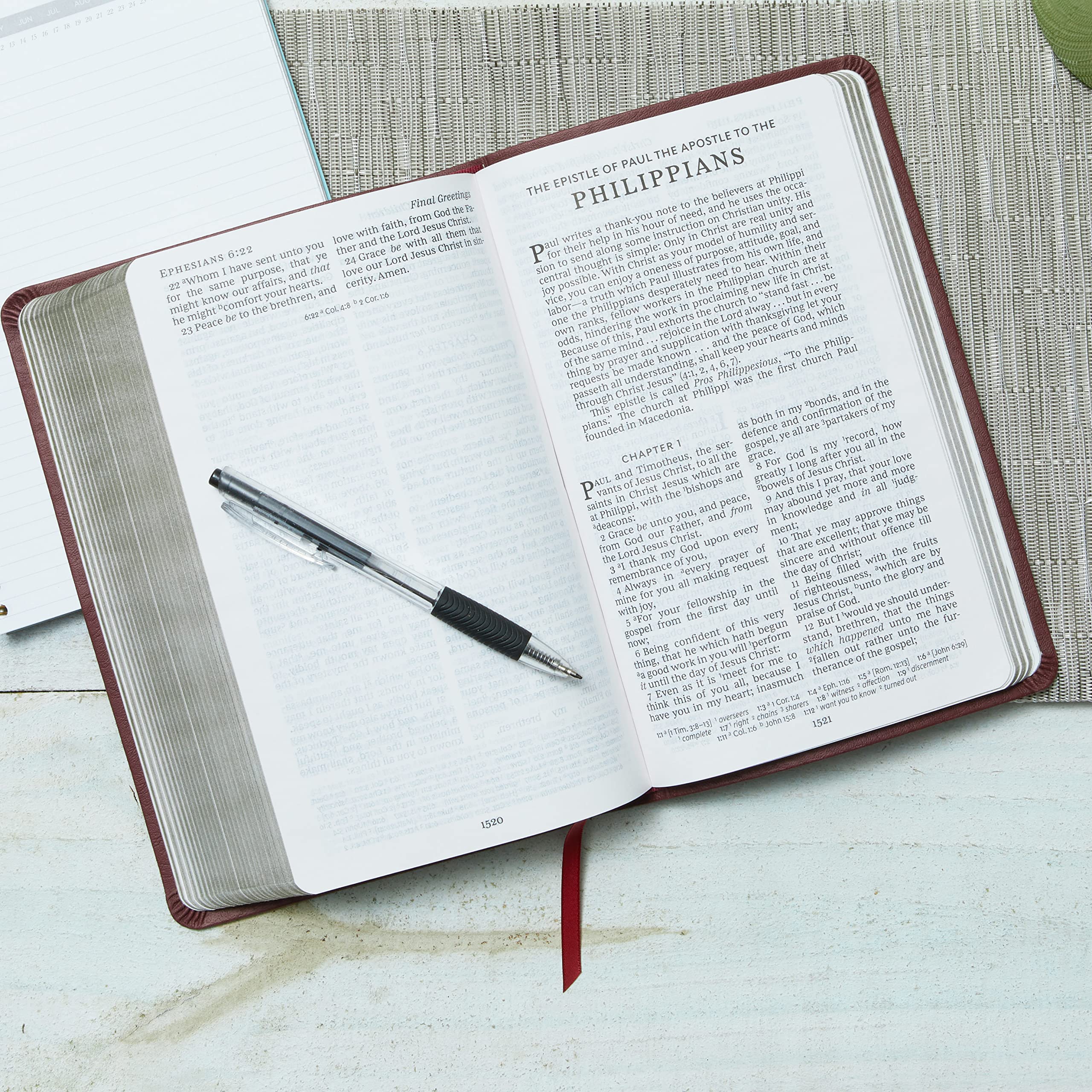 The New King James Bible with end-of-page cross references that’s just the right size to take with you wherever you go. The slim design of the NKJV Thinline Reference Bible means you can bring it along, wherever your day takes you. When you open it up, you’ll discover Thomas Nelson’s exclusive NKJV Comfort Print® typeface, which is designed to provide a smooth reading of the accurate and beautiful New King James Version. And with features like a complete cross-reference system, a concordance, and full-color maps, you’ll still have the tools to get more out of God’s Word. Features include: End-of-page cross references allows you to find related passages quickly and easily Satin Ribbon Markers are a useful tool to easily navigate and keep track of where you were reading Presentation page allows you to personalize this special gift by recording a memory or note Bible book introductions provide an overview and context for each book Words of Christ in red quickly identify verses spoken by Jesus Reading plan guiding you through the entire Bible in a year Concordance for looking up a word’s occurrences throughout the Bible Full-color maps provide a visual representation of Israel and other biblical locations for better context Gilded page edges add a beautiful shine around the border of the paper Clear and readable 8-point NKJV Comfort Print
