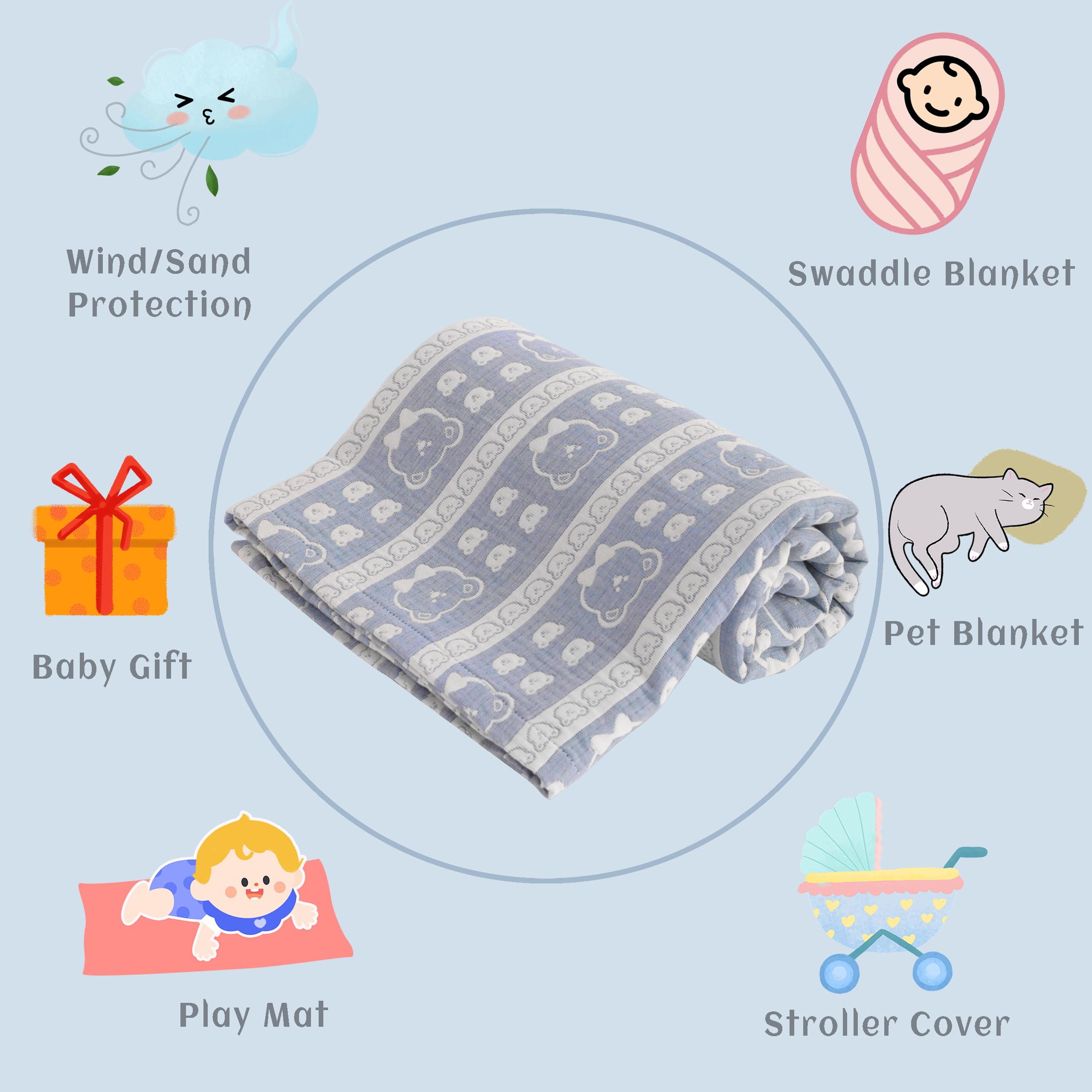 Multiple use: These muslin blankets can be used for tummy time, traveling, cuddling, stroller and car seat use, picnics, and even as a throw blanket.