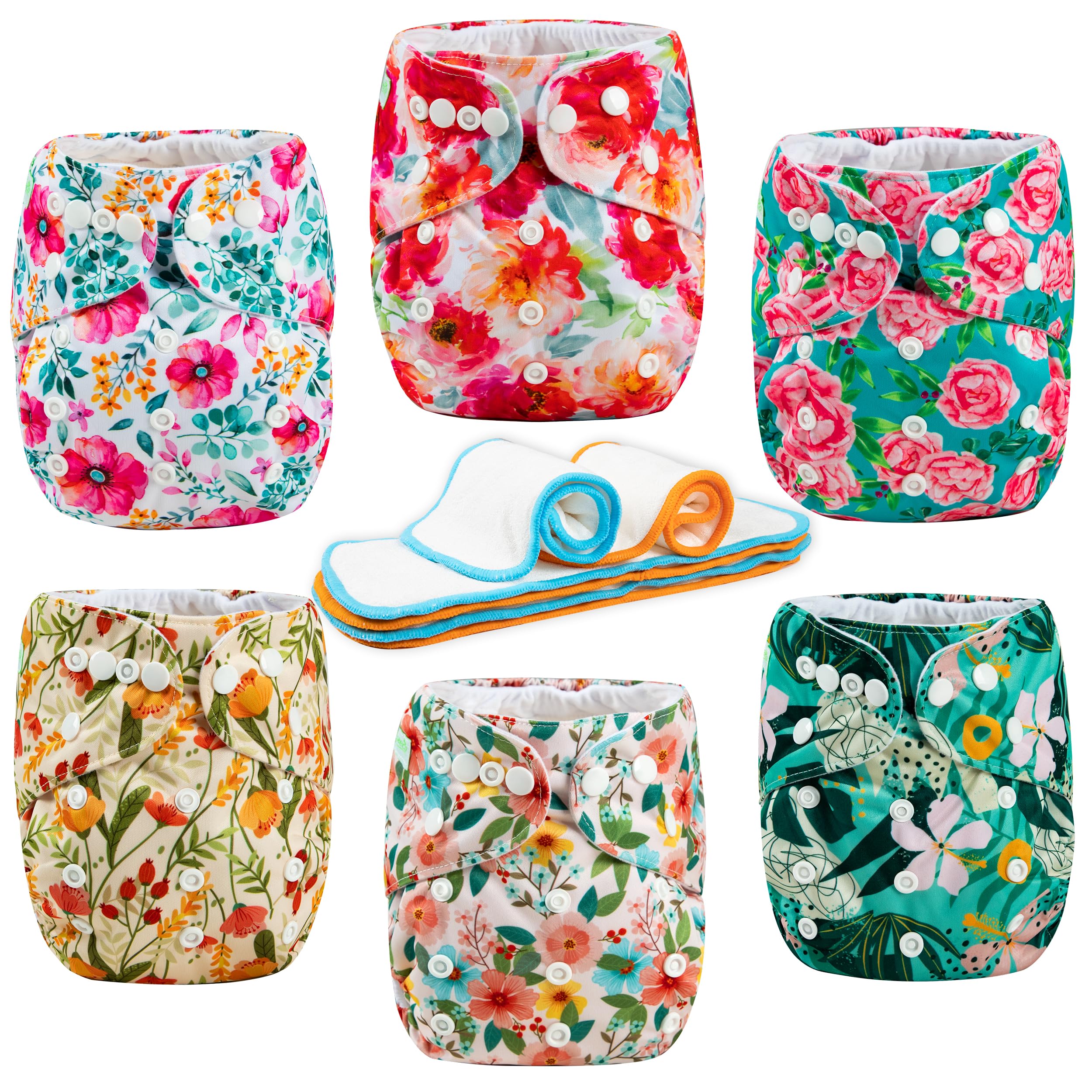 Thoughtful Package: Including 6 pack of diapers + 6 inserts + 1 wet bag per pack, 6 different modern patterns; Cute stylish prints for boys & girls; It would be ideal products for the newborns and moms