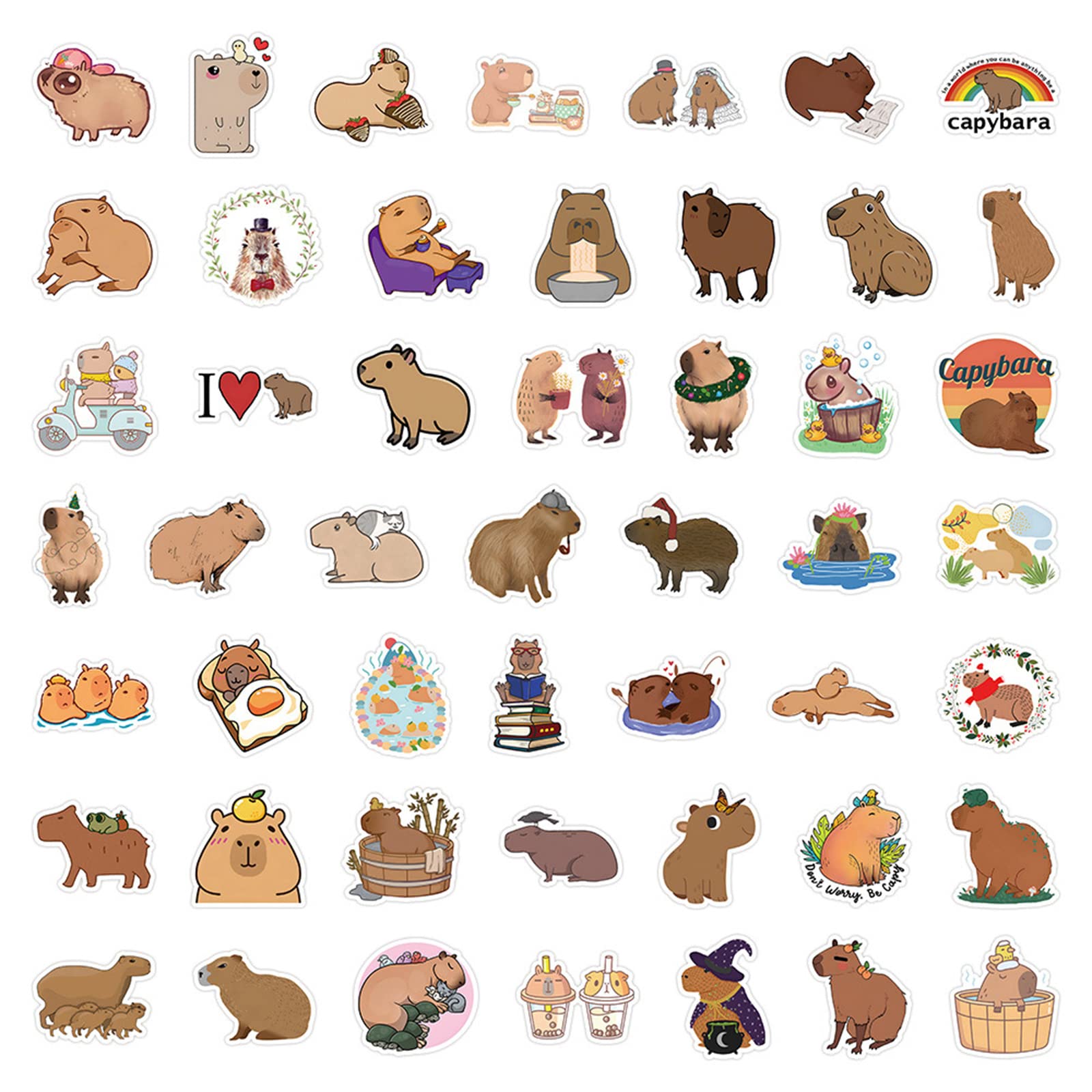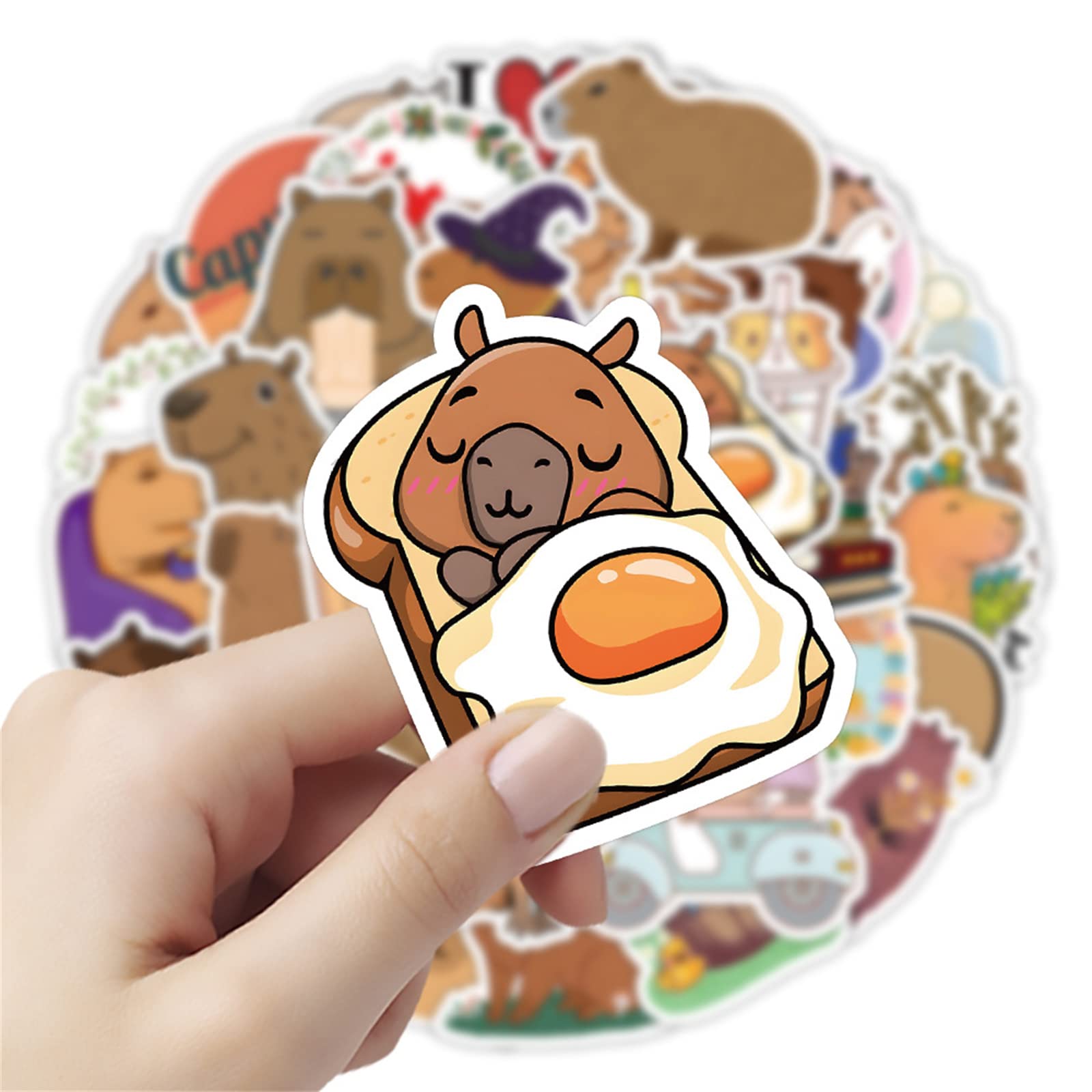 ★Various Cute Stickers★ There are 50PCS different capybara sticker packs. Assorted stickers are all made of PVC vinyl waterproof stickers, high-definition patterns and bright colors. All decals are in the range of 2-4 inches size.