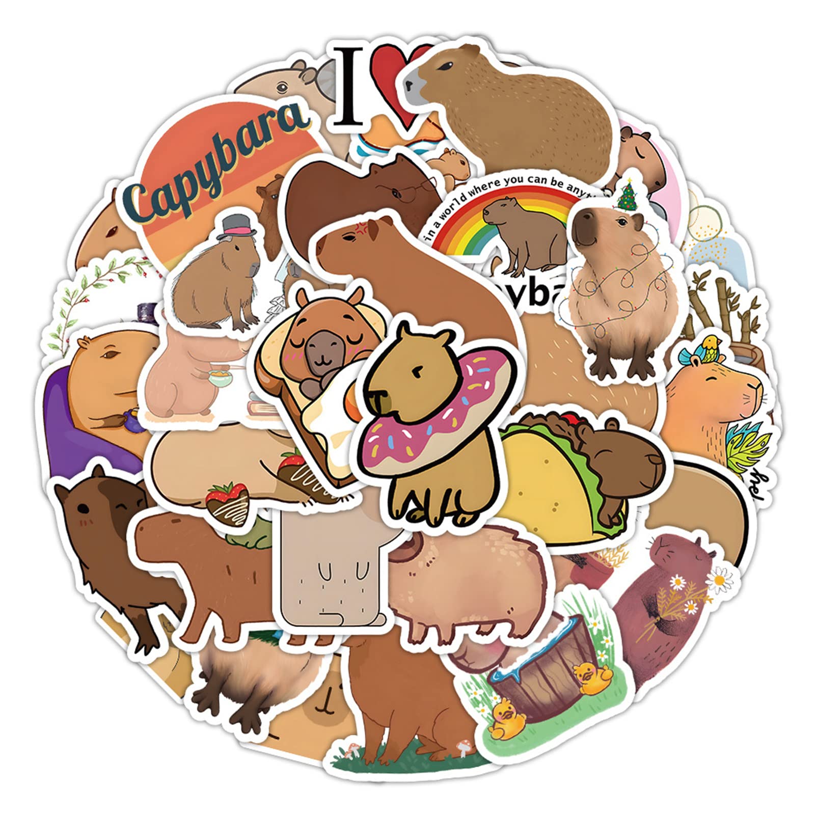 Asverbet——Bring Life A Little More Beauty and Laughter. Product Description of Capybara Stickers: Theme: Funny Style Stickers Material: High quality vinyl PVC Single size: About 2-3.5 inch of each design Quantity: 50Pcs/pack Features: --WATERPROOF:Made with waterproof vinyl, and are printed with non-soluble inks. This means your stickers won’t slide off in wet conditions, and your colors will remain bold and vibrant. --STICKY:The adhesive is extremely sticky, meaning that they will stay stuck until removed. --REMOVABLE WITHOUT RESIDUE:It also uses a removable adhesive, meaning it can be applied and removed without causing any damage or leaving residue behind. Q&A: Q:Are the capybara stickers delivered randomly and will they be repeated? A:Be at ease,the capybara stickers waterproof are not delivered randomly, all sticker patterns are different and will not repeat.Our stickers are well made with excellent materials, pleasant patterns and each of which has been carefully selected. Q:Is capybara stickers really waterproof and how is the quality? A:Sure!The capybara stickers are all made of vinyl, very waterproof,high-definition patterns and bright colors. So the boho stickers are worth buying.NOW!!! Asverbet is a professional and responsible brand and provides every product with hearts, which is worthy of the trust of you and your family.