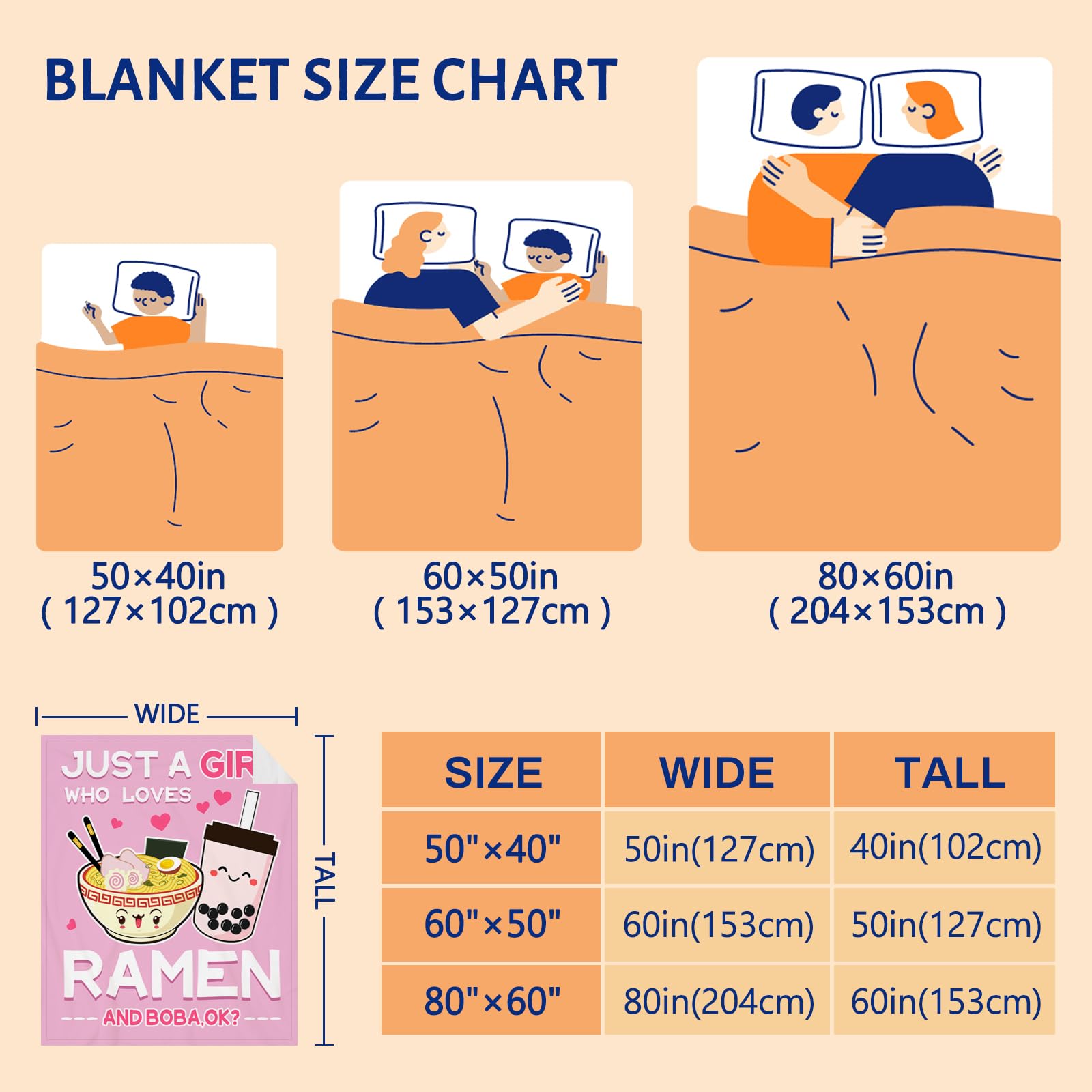 Versatile and Functional: This Ramen and Boba Throw Blanket Is Not Only Cozy for Bedtime, But It Can Also Be Used As A Bedspread, for Watching Tv, or Relaxing On The Couch. It Comes In Different Sizes, Making It Suitable for Both Kids and Adults.