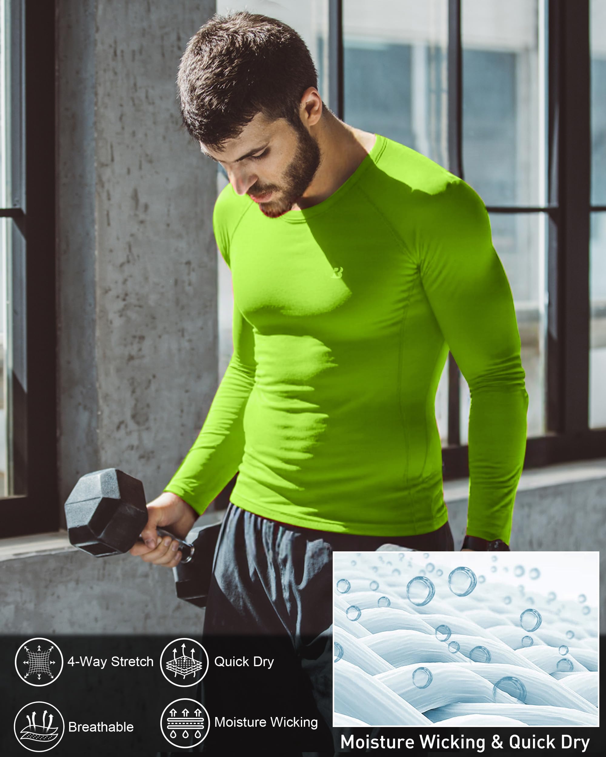 Breathable & Quick-Drying: Made with moisture-wicking tech, quick-dry fabric that pulls sweat away from your skin; Even during intense workouts or hot outdoor training, this long sleeve compression shirt keeps you cool, fresh, and distraction-free