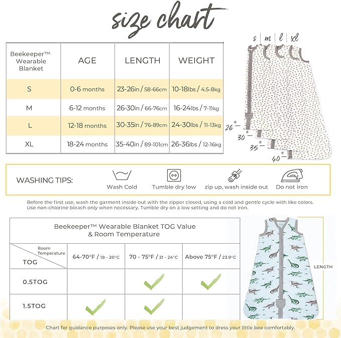 Available in Multiple Sizes: This wearable blanket baby design ensures the right fit at every stage available in S(0-6M), M(6-12M), L(12-18M), and XL(18-24M) to grow with your child.