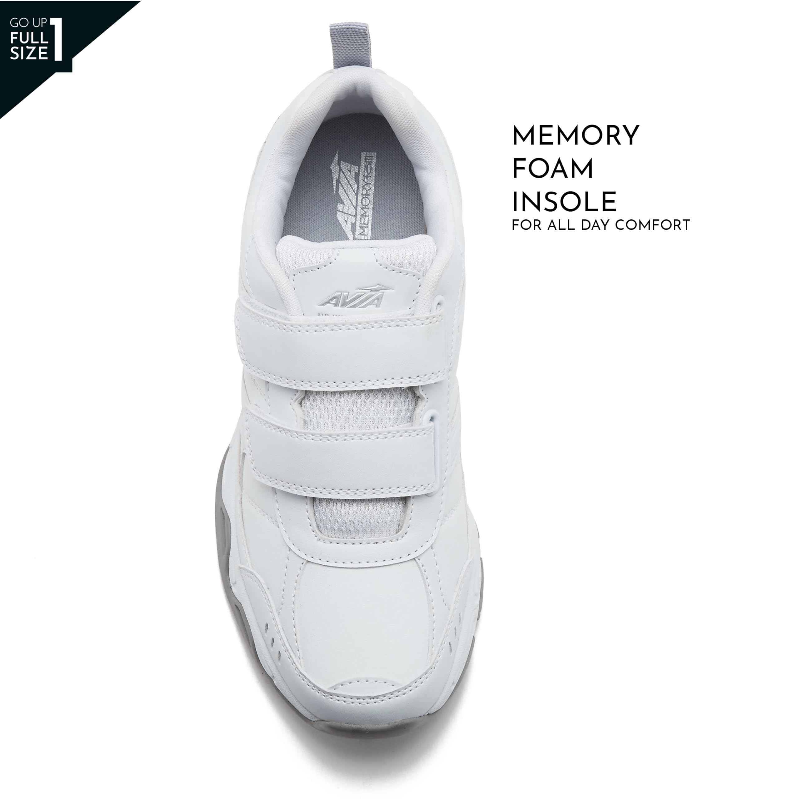 SUPPORTIVE & DURABLE STRAPS WALKING OR WORK SNEAKERS - The compression molded EVA midsole, anatomical heel cradle, and Avia’s Cantilever Technology center and stabilize the heel, and provide exceptional shock absorption and cushioning.
